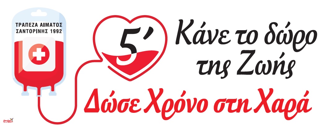 Γι' αυτό σε προσκαλώ κι εγώ να ανταποκριθείς στο κάλεσμα της Τράπεζας Αίματος Σαντορίνης και να δώσεις κι εσύ για πρώτη φορά αίμα αλλά και να γίνεις τακτικός εθελοντής αιμοδότης προσφέροντας λίγο από τον ίδιο σου τον εαυτό σε έναν άνθρωπο που το έχει ανάγκη.