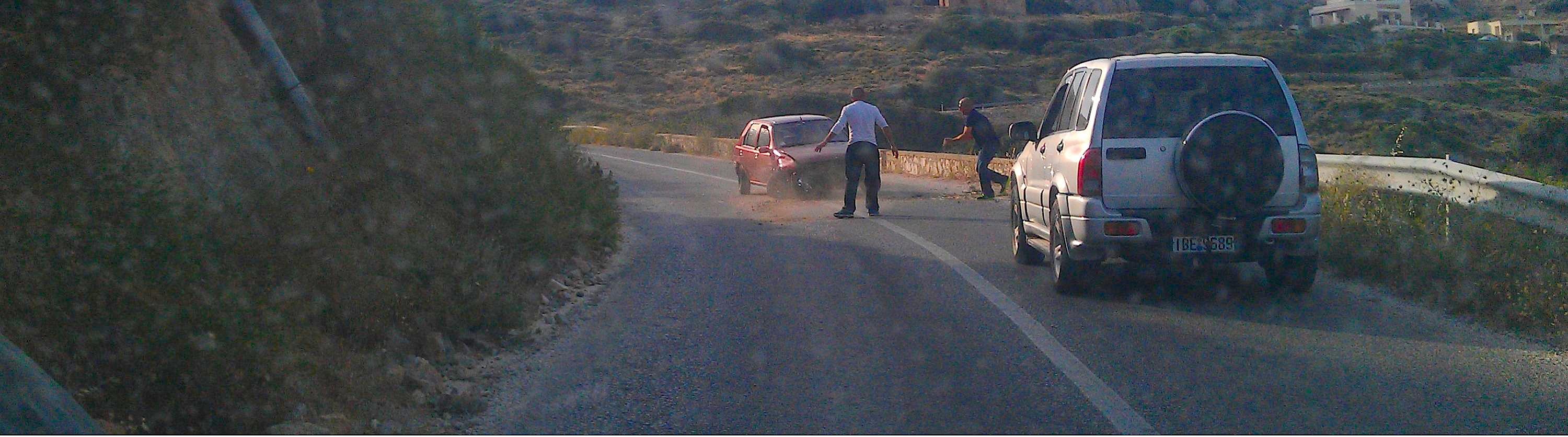 Μικρή σύγκρουση οχήματος επάνω σε βραχώδες σημείο προκλήθηκε σήμερα το απόγευμα όταν ο οδηγός ξέφυγε από την πορεία του σε επικίνδυνο σημείο του δρόμου που οδηγεί από το Κίνι προς την Ερμούπολη.