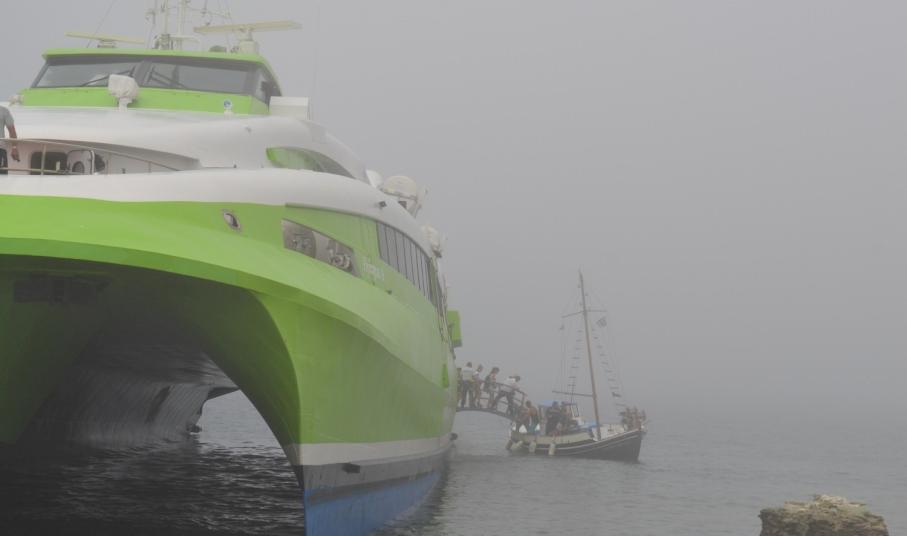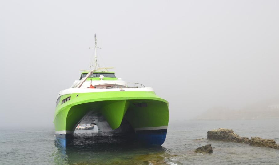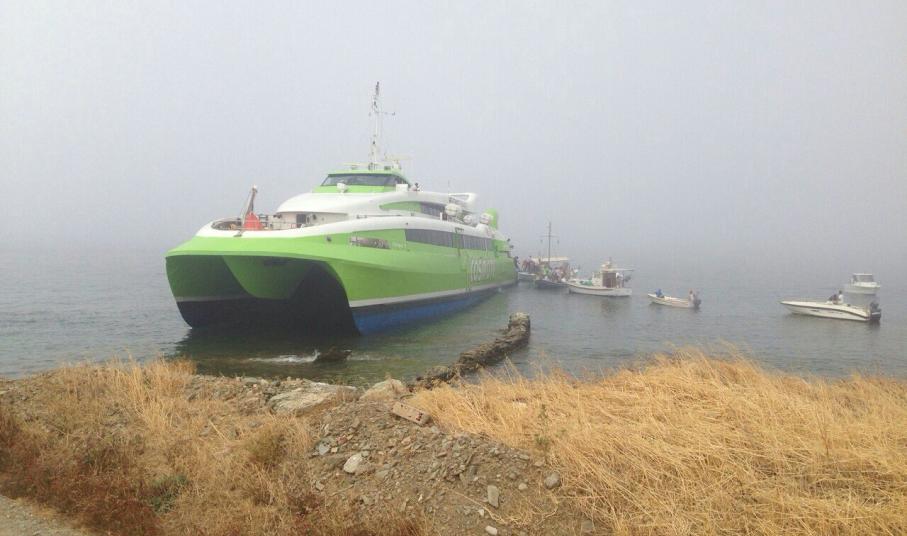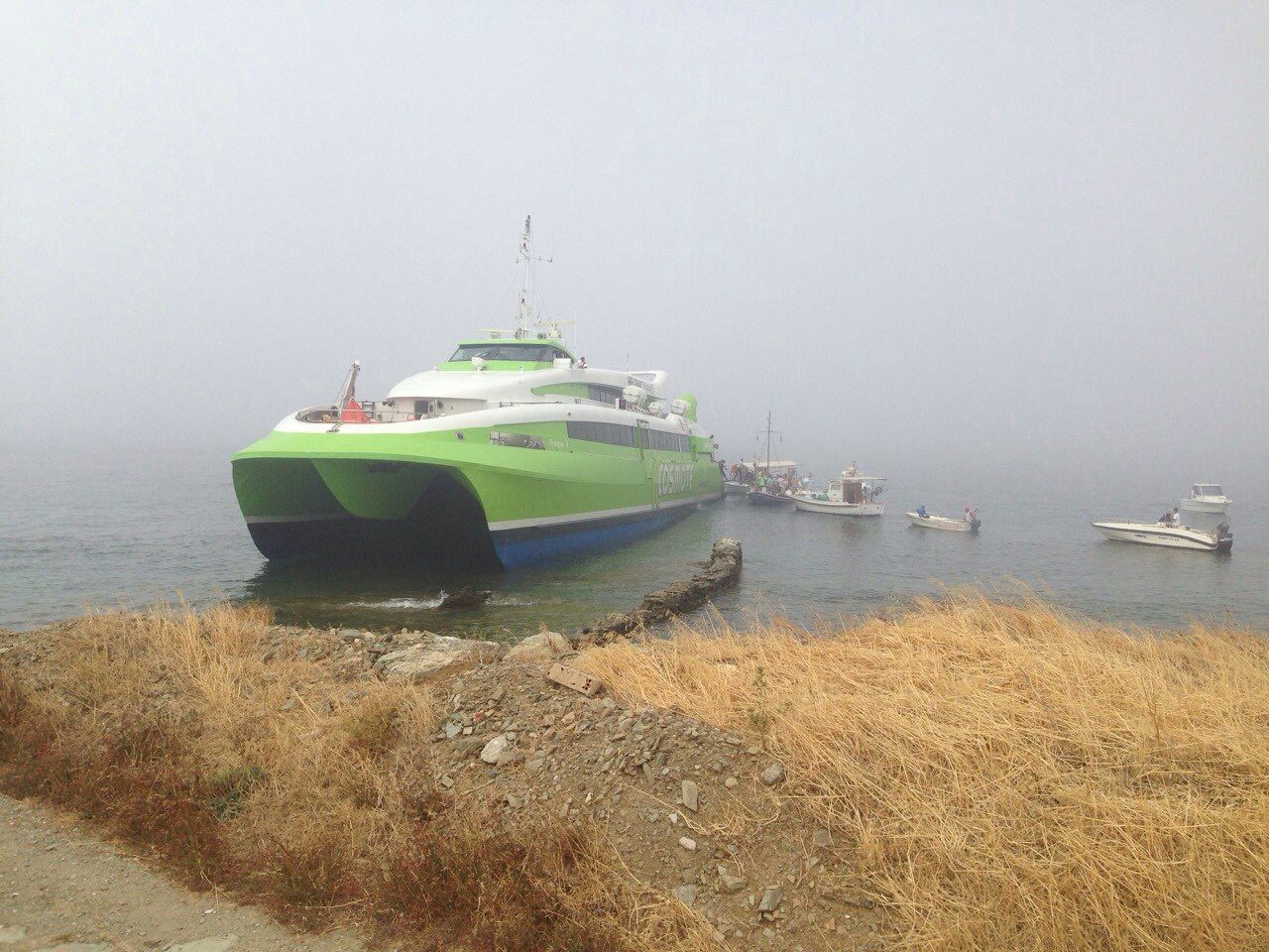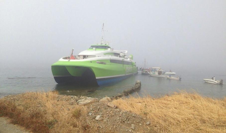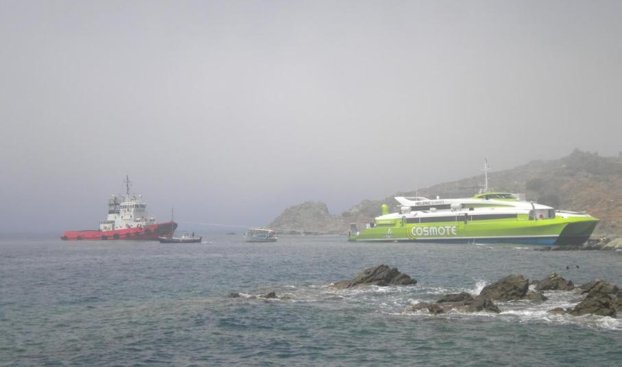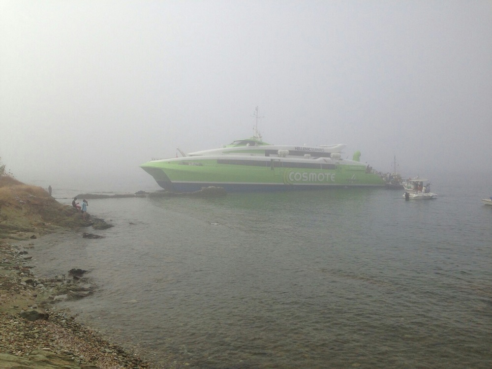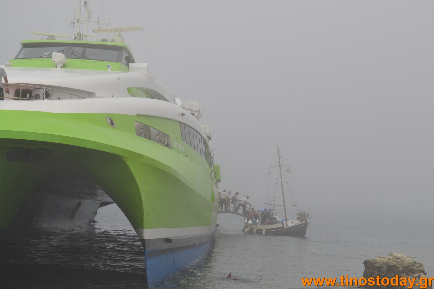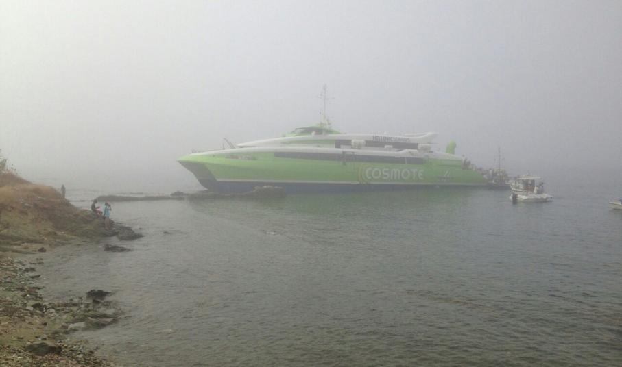 Σε θαλάσσια περιοχή έξω από το λιμάνι της Τήνου προσάραξε το πρωί της Κυριακής (περίπου 09.30) το Flying Cat 4 σε αβαθή νερά εξαιτίας της πυκνής ομίχλης, η οποία προκάλεσε μειωμένη ορατότητα.