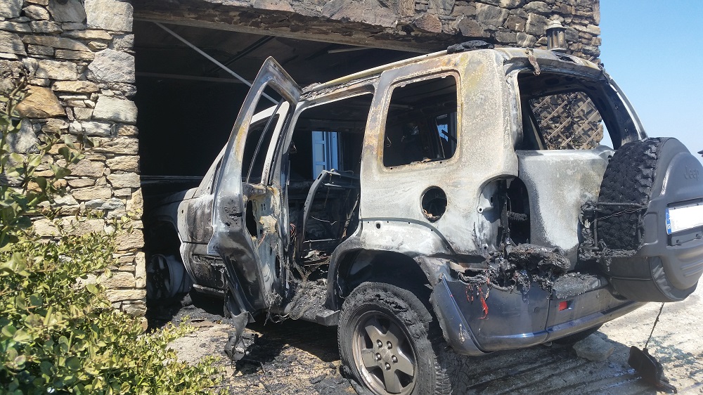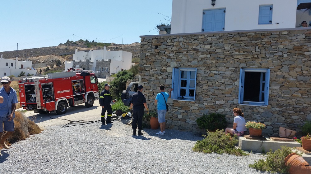 Σήμερα Κυριακή 30 Αυγούστου 2015 και περί Ω/11:50 περίπου εκδηλώθηκε πυρκαγιά σε γκαράζ τριώροφη μονοκατοικίας στην «Αζόλιμνο» Σύρου. Από την πυρκαγιά καταστράφηκε ολοσχερώς ένα Ι.Χ.Ε. αυτοκίνητο μάρκας Jeep Cherokee και προκλήθηκαν ζημιές σε δεύτερο Ι.Χ.Ε. αυτοκίνητο μάρκας Mercedes Kompressor που βρίσκονταν σταθμευμένο εντός του χώρου. Η Πυροσβεστική Υπηρεσία Ερμούπολης έσπευσε άμεσα στον τόπο του συμβάντος με ένα (1) όχημα και τρεις (3) Πυροσβέστες, όπου χάρη στην έγκαιρη επέμβαση της απέτρεψε να επεκταθεί η πυρκαγιά στο δεύτερο όχημα και στους χώρους της οικίας πάνω από το γκαράζ.
