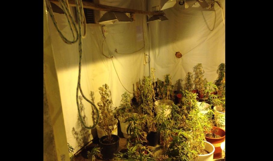 Επίσης, εντοπιστήκαν στον περίβολο-κτήμα της κατοικίας δυο καλλιέργειες κάνναβης, μια υπαίθρια και μια εσωτερικού χώρου.
