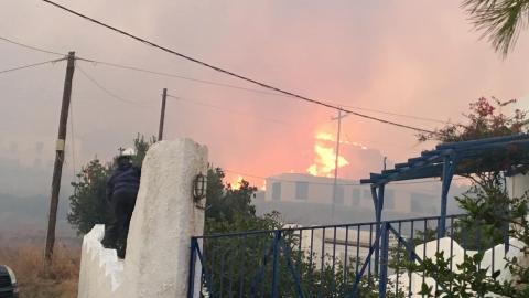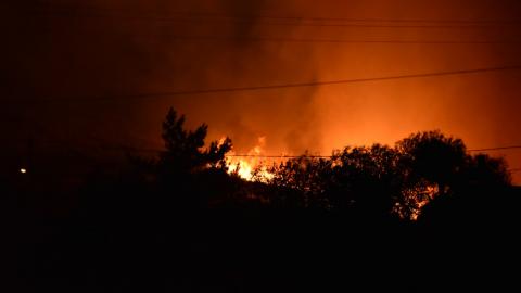 19:40 Η πυρκαγιά επεκτείνεται πλέον και προς την πλευρά της Βάρης, από την πλευρά του λόφου.