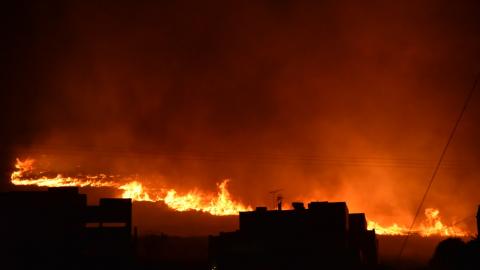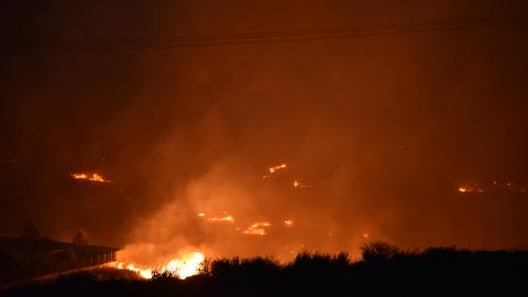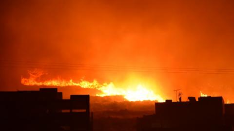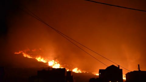 18:00 Η πυρκαγιά έχει πλέον υπερβεί τα όρια του λόφου και έχει απειλήσει κατοικίες, με μία μεγάλη πιθανότητα να έχει προκαλέσει μεγάλες υλικές ζημιές.