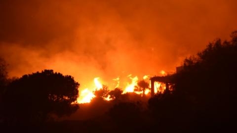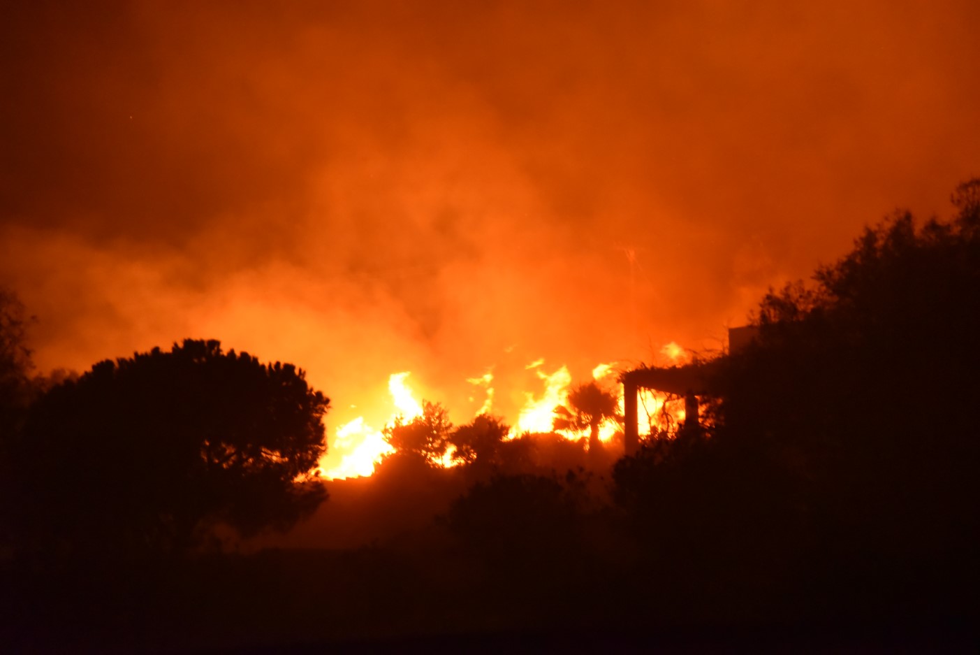 17:30 Η πυρκαγιά εξαπλώνεται ακόμη περισσότερο, με τις φλόγες να έχουν ανέβει σε όλη την πλαγιά του λόφου και να προχωρούν με μεγάλη ορμή.
