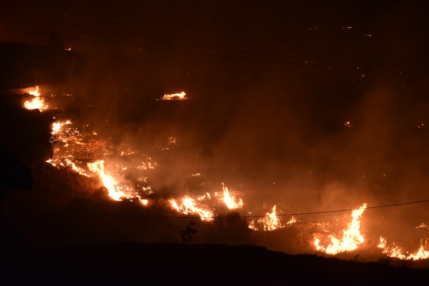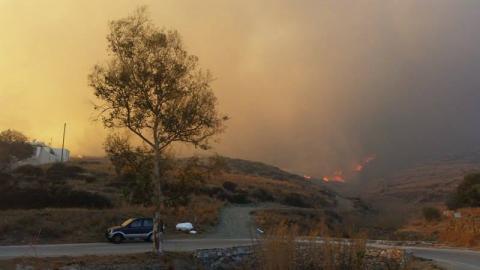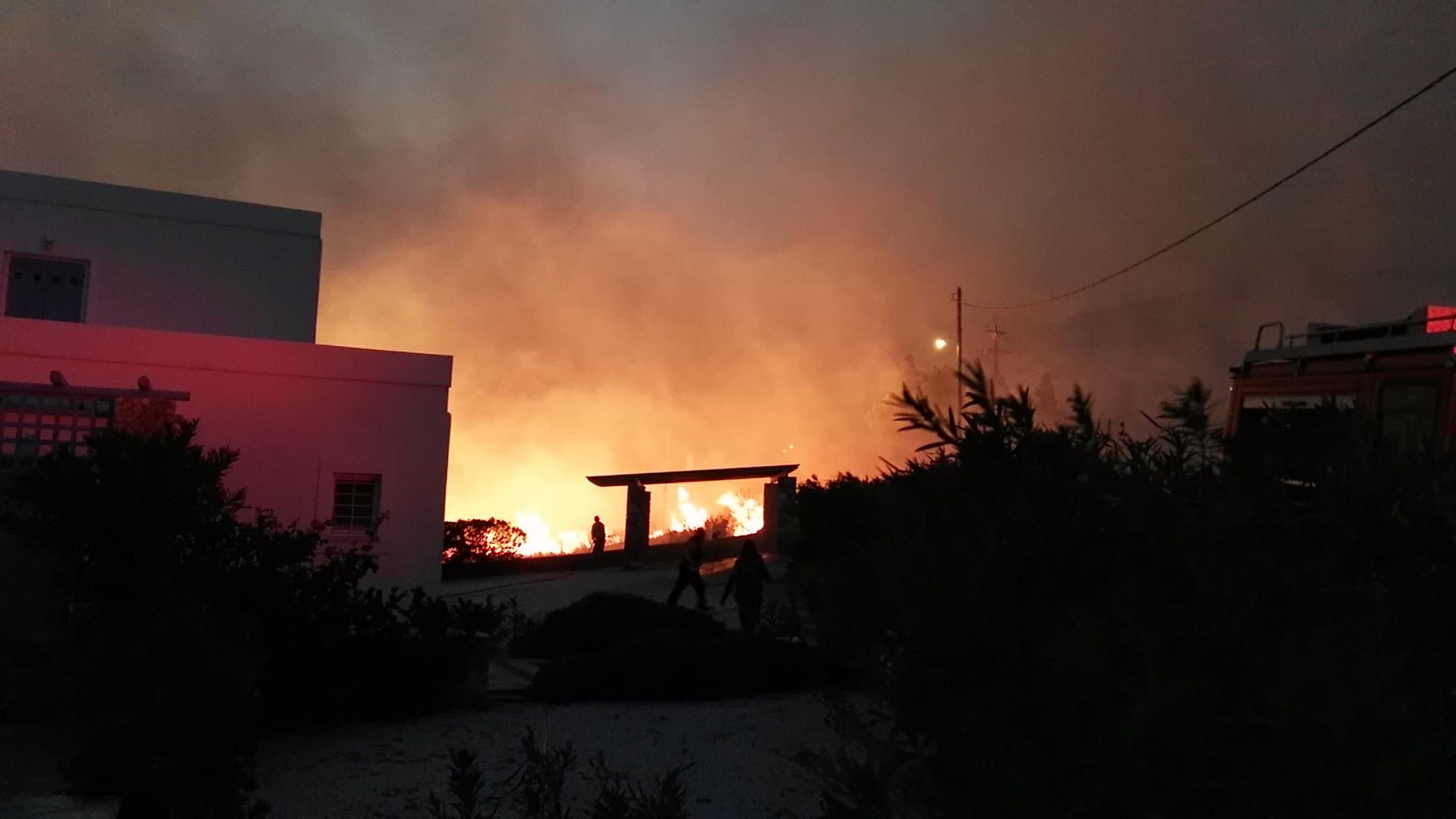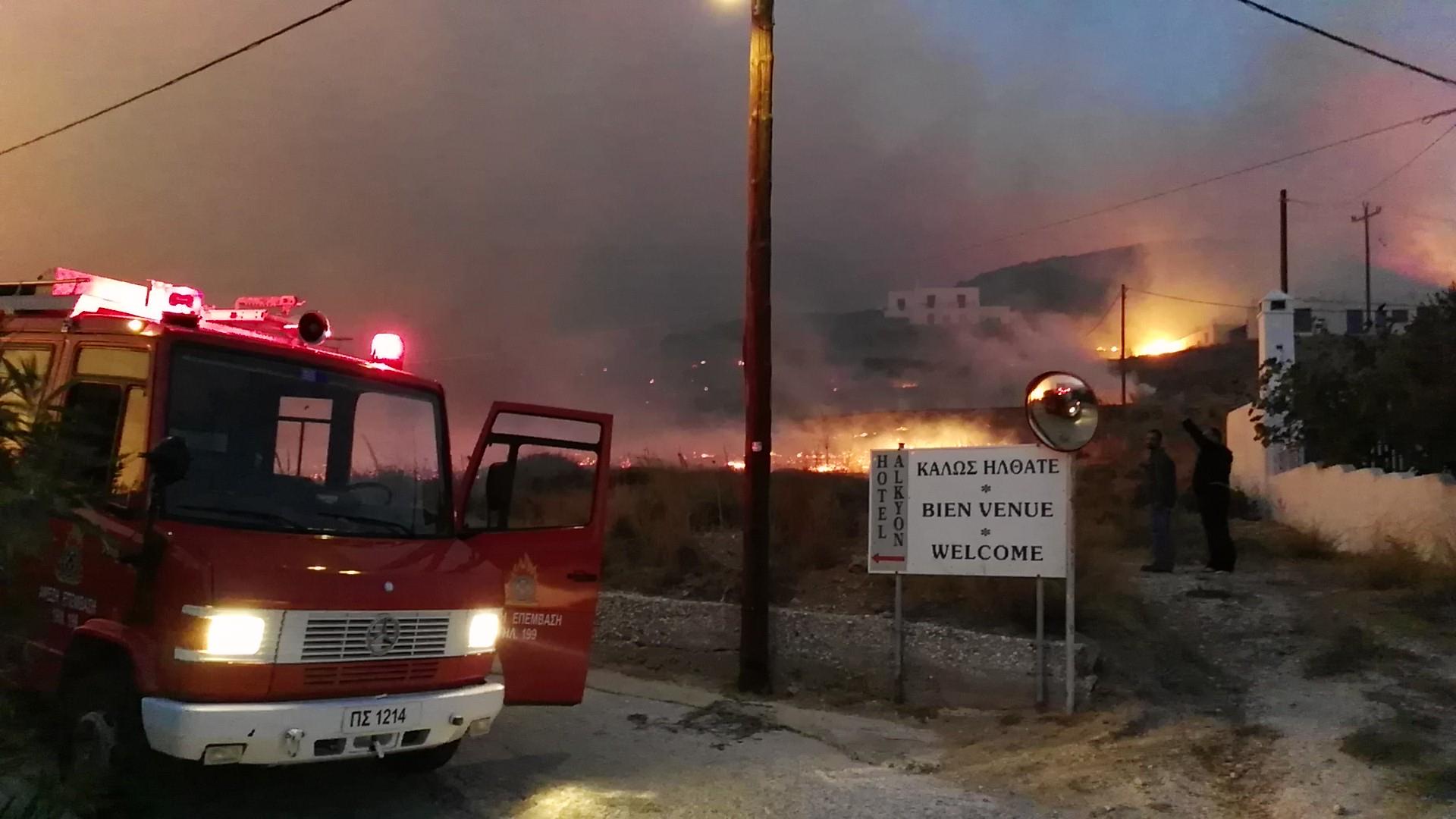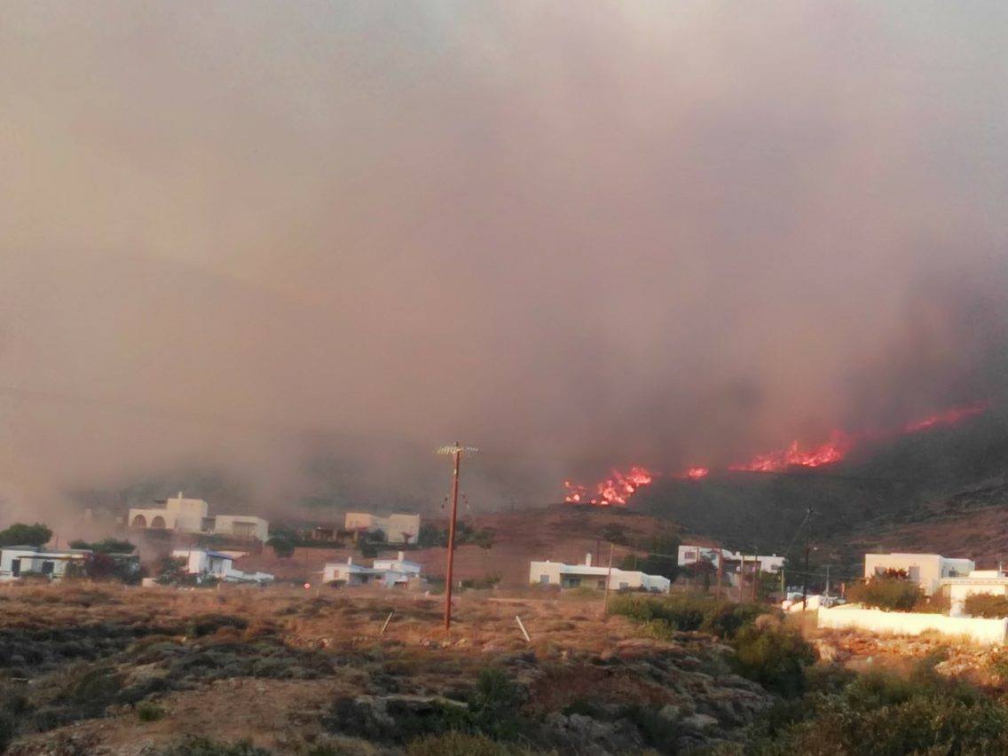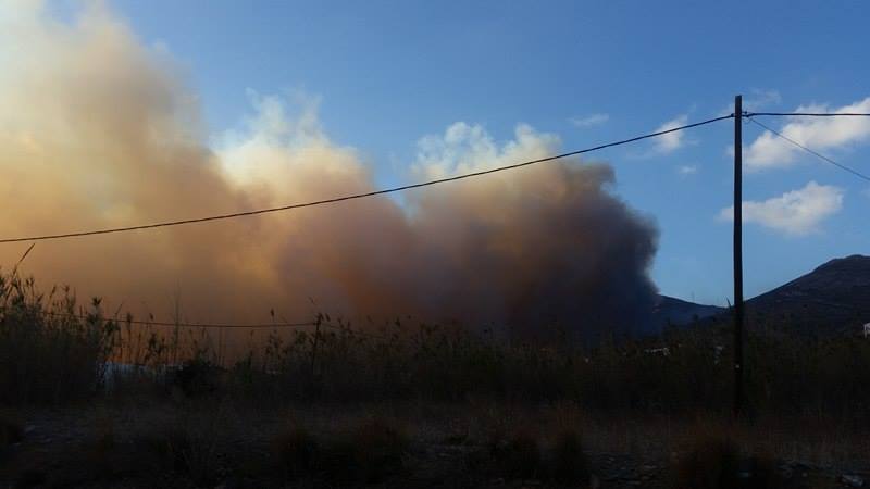 19:30 Η πυρκαγιά έφτασε έως και το χαμηλό σημείο του κεντρικού δρόμου στο Μέγα Γιαλό, ενώ από νωρίς επεκτάθηκε, λόγω των ριπών του ανέμου, στην Αμπέλα και τα Τρία Λαγγόνια. Αυτή τη στιγμή συνεχίζει να επεκτείνεται προς Άδειατα.
