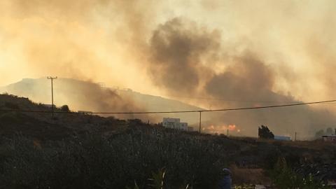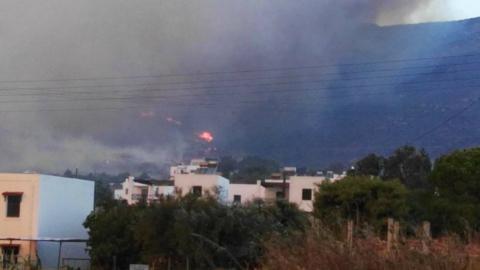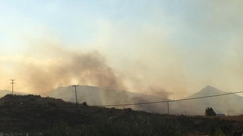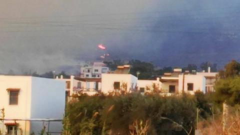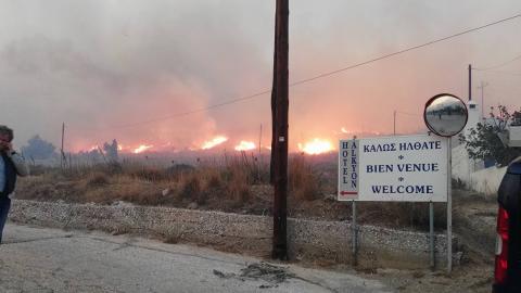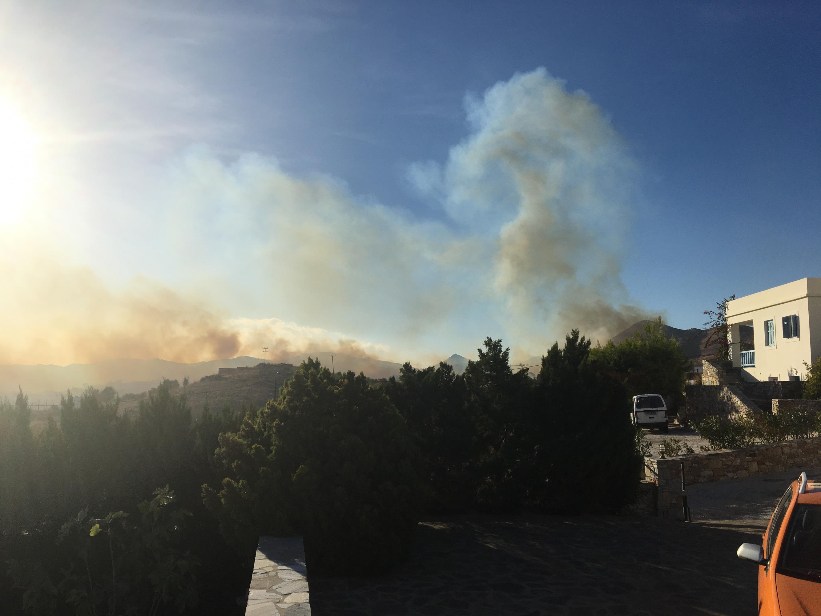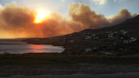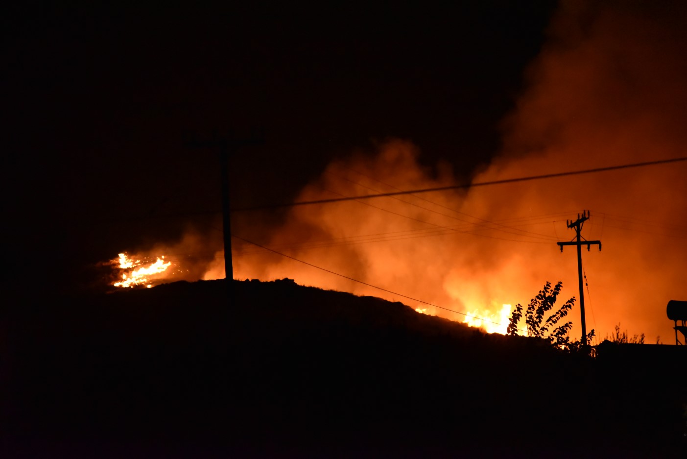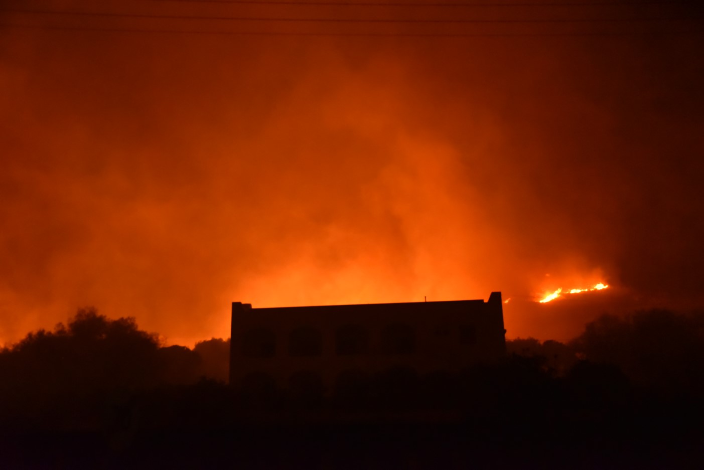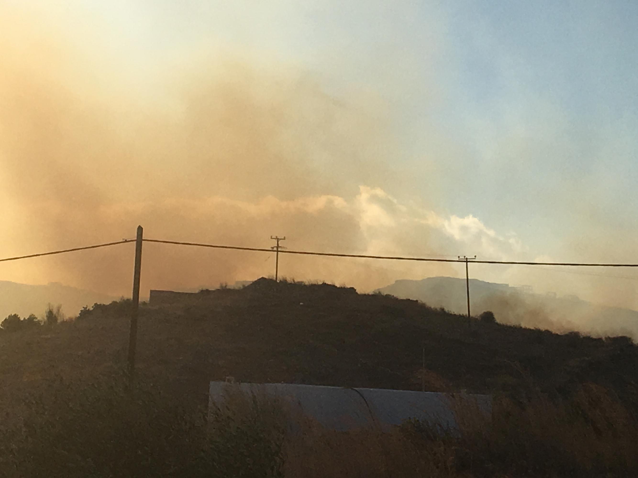 19:30 Η πυρκαγιά έφτασε έως και το χαμηλό σημείο του κεντρικού δρόμου στο Μέγα Γιαλό, ενώ από νωρίς επεκτάθηκε, λόγω των ριπών του ανέμου, στην Αμπέλα και τα Τρία Λαγγόνια. Αυτή τη στιγμή συνεχίζει να επεκτείνεται προς Άδειατα.