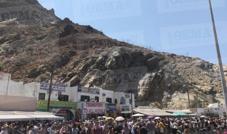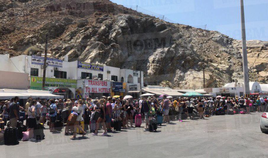 Τεράστια ταλαιπωρία σε δεκάδες επισκέπτες της Σαντορίνης προκάλεσε τηλεφώνημα για τοποθέτηση βόμβας σε αγκυροβολημένο πλοίο στο λιμάνι του νησιού, με τους επιβάτες που ανέμεναν την εξυπηρέτησή τους με τα πλοία «Νήσος Σάμος», «Champions Jet I» και «Sea Jet 2» να αναγκαστούν σε περαιτέρω αναμονή και μάλιστα υπό υψηλές θερμοκρασίες.