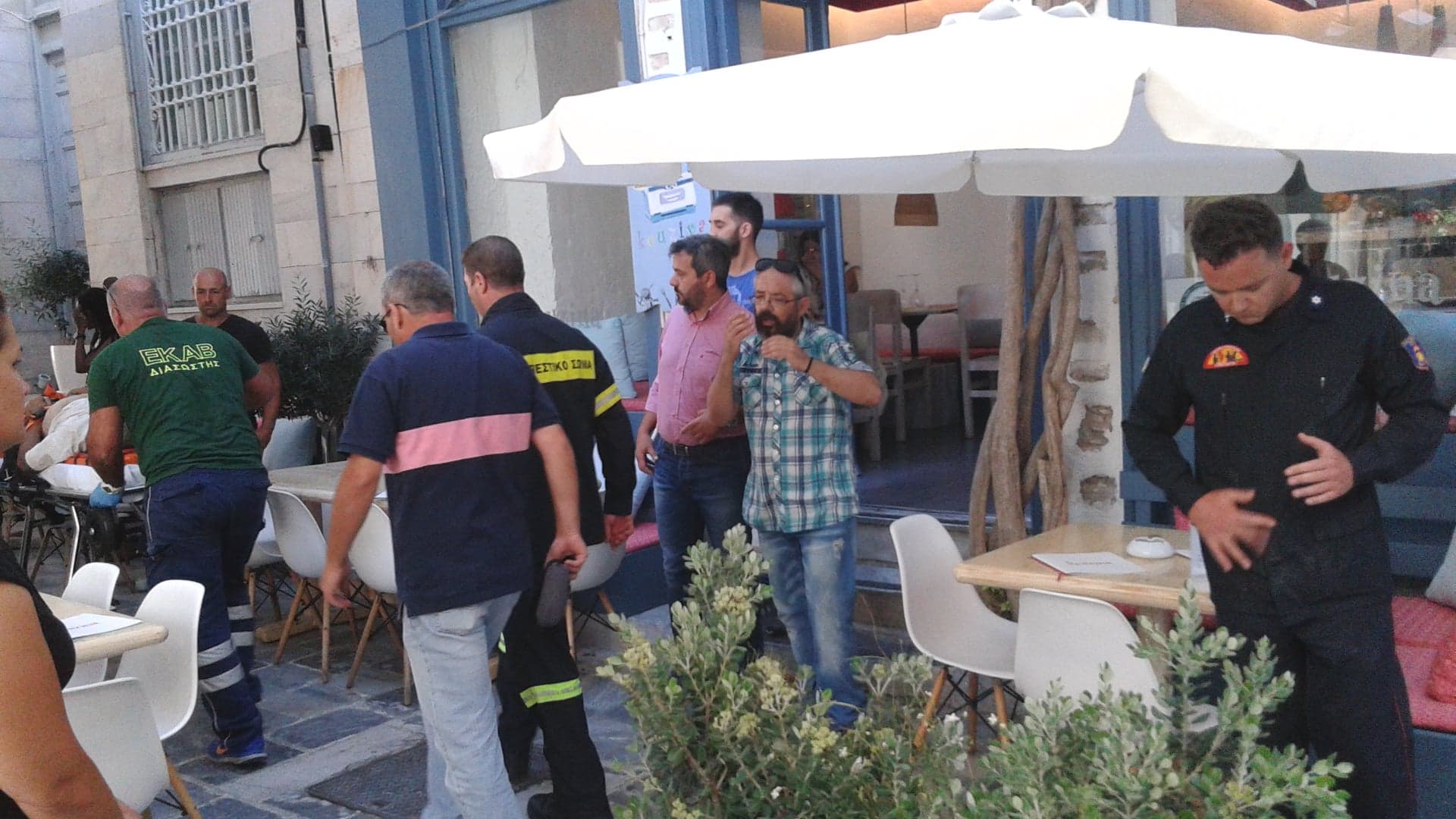 Πρόκειται για εργάτη που δούλευε και το περιστατικό σημειώθηκε στην οδό Βοκοτοπούλου πλησίον της συμβολής του πεζόδρομου Πρωτοπαπαδάκη και Θυμ. Σπερχειού. Άμεσα έσπευσε ασθενοφόρο όχημα, ενώ στο σημείο μετέβησαν και άνδρες της Πυροσβεστικής Υπηρεσίας Ερμούπολης.