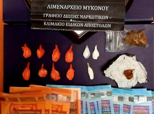 Ειδικότερα, σε έλεγχο που διενεργήθηκε στην περιοχή “ΚΑΛΑΜΟΠΟΔΙ” (ΠΑΡΑΝΤΑΪΣ) Μυκόνου από προσωπικό του Γραφείου Δίωξης Ναρκωτικών και του Κλιμακίου Ειδικών Αποστολών με τη συνδρομή χειριστή/συνοδού αστυνομικού σκύλου ανίχνευσης ναρκωτικών ουσιών της οικείας Λιμενικής Αρχής εντοπίστηκε ο 19χρονος να έχει στην κατοχή του μία (01) νάιλον συσκευασία περιέχουσα κοκαΐνη μικτού βάρους σαράντα έξι εκατοστών του γραμμαρίου (0,46gr), την οποία δήλωσε ότι προμηθεύτηκε από τον 31χρονο.