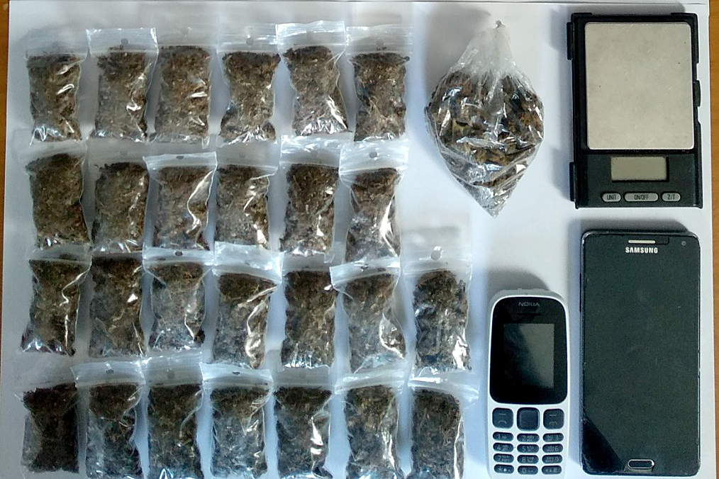 - Κάνναβη ακατέργαστη συνολικού βάρους 139,1 γραμμαρίων διαμοιρασμένη σε μικροσυσκευασίες έτοιμες για πώληση