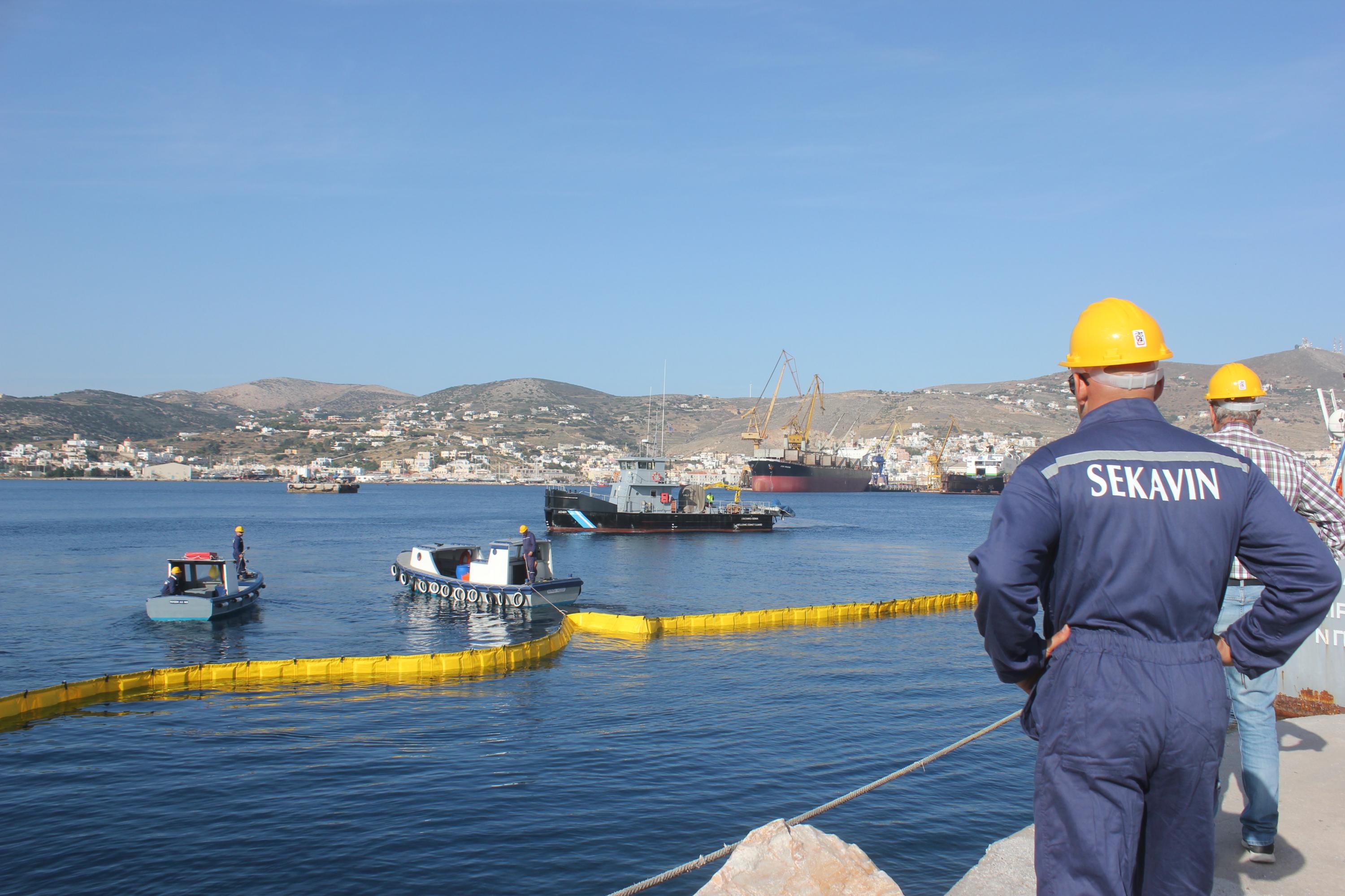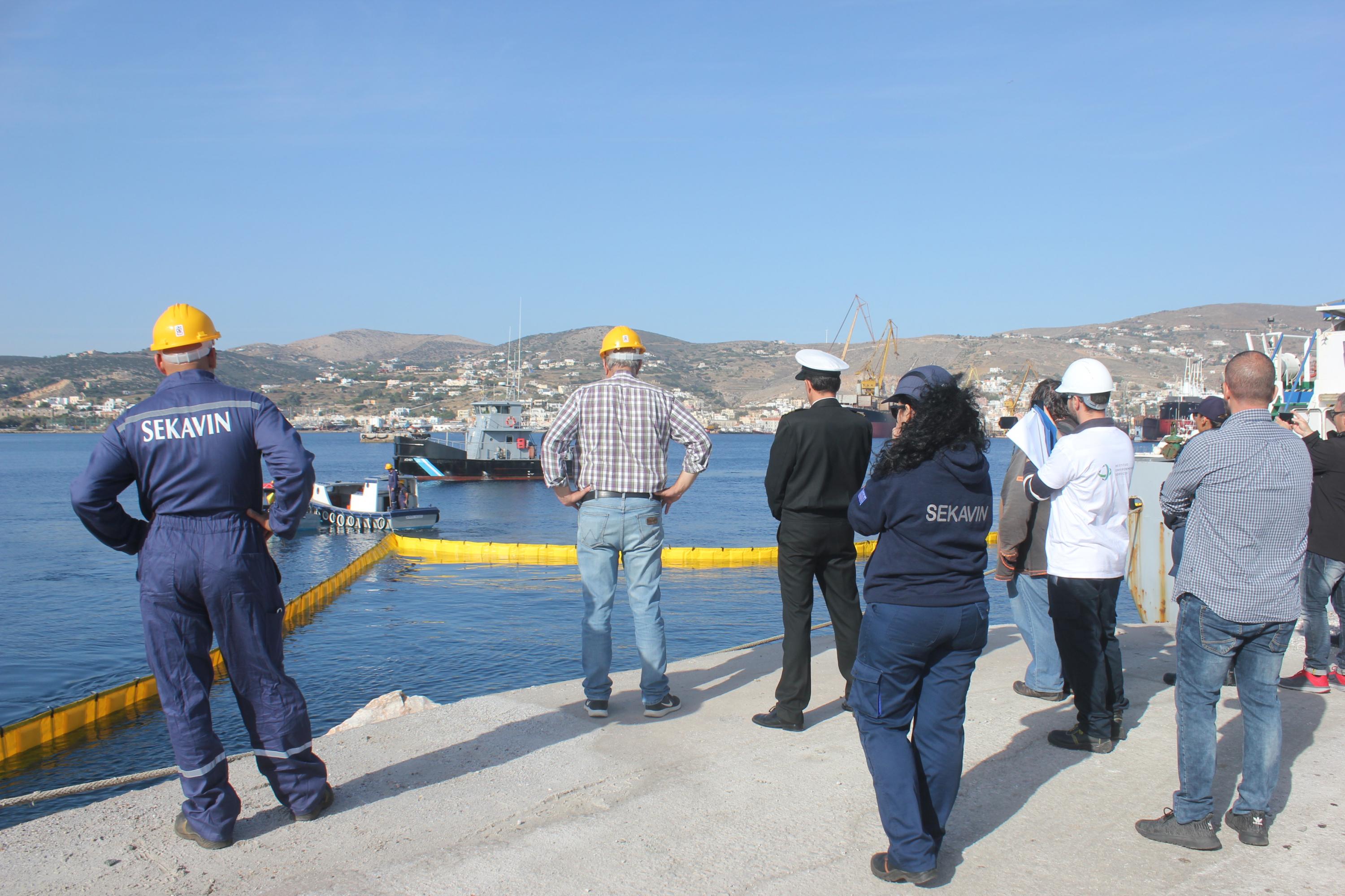Σύμφωνα με τον κ. Σπυριδάκη τονίσθηκε πως μέγιστη προτεραιότητα τόσο για τη SEKAVIN όσο και για το Λιμεναρχείο Σύρου σε περιστατικό θαλάσσιας ρύπανσης, αποτελεί ο περιορισμός της πετρελαιοκηλίδας άμεσα και ουσιαστικά ο “εγκλωβισμός” της με πλωτό φράγμα. Αυτό άλλωστε είναι το πρώτο βήμα που πρέπει να πραγματοποιήσουν οι αρμόδιοι, προκειμένου να μην εξαπλωθεί περισσότερο η πετρελαιοκηλίδα, από το σημείο που θα υπήρχε η ρύπανση.
