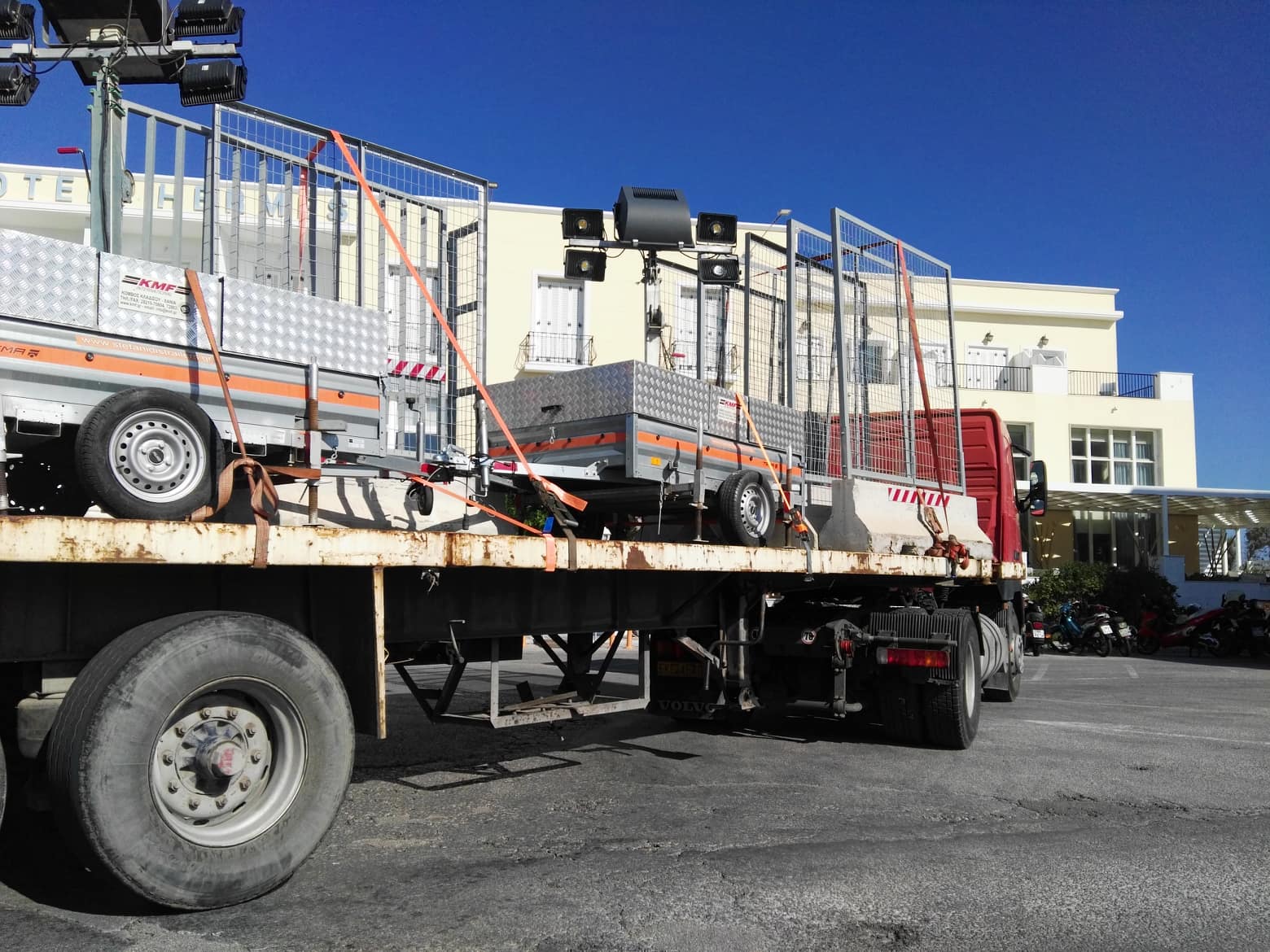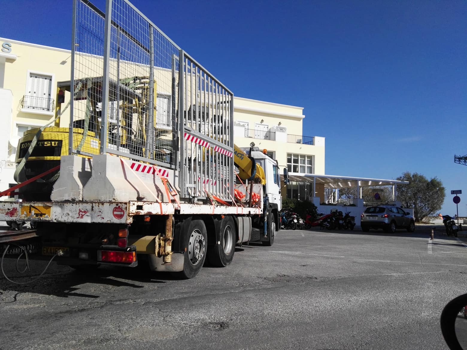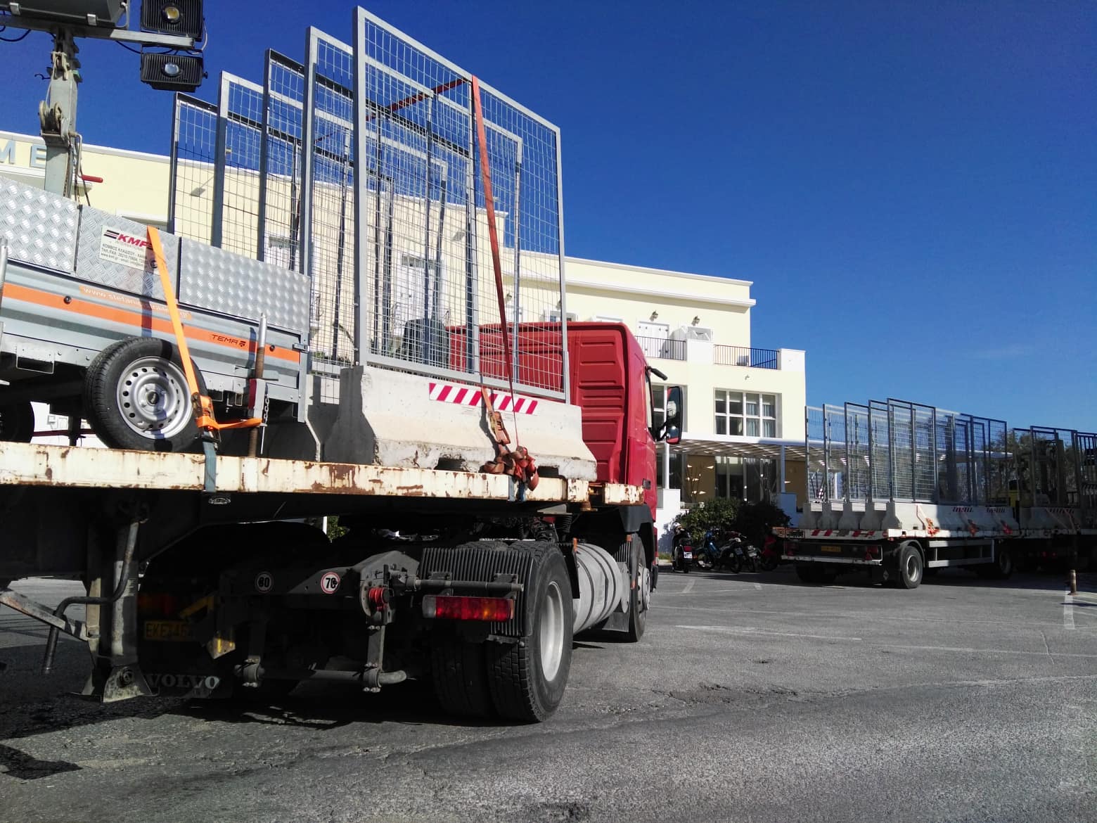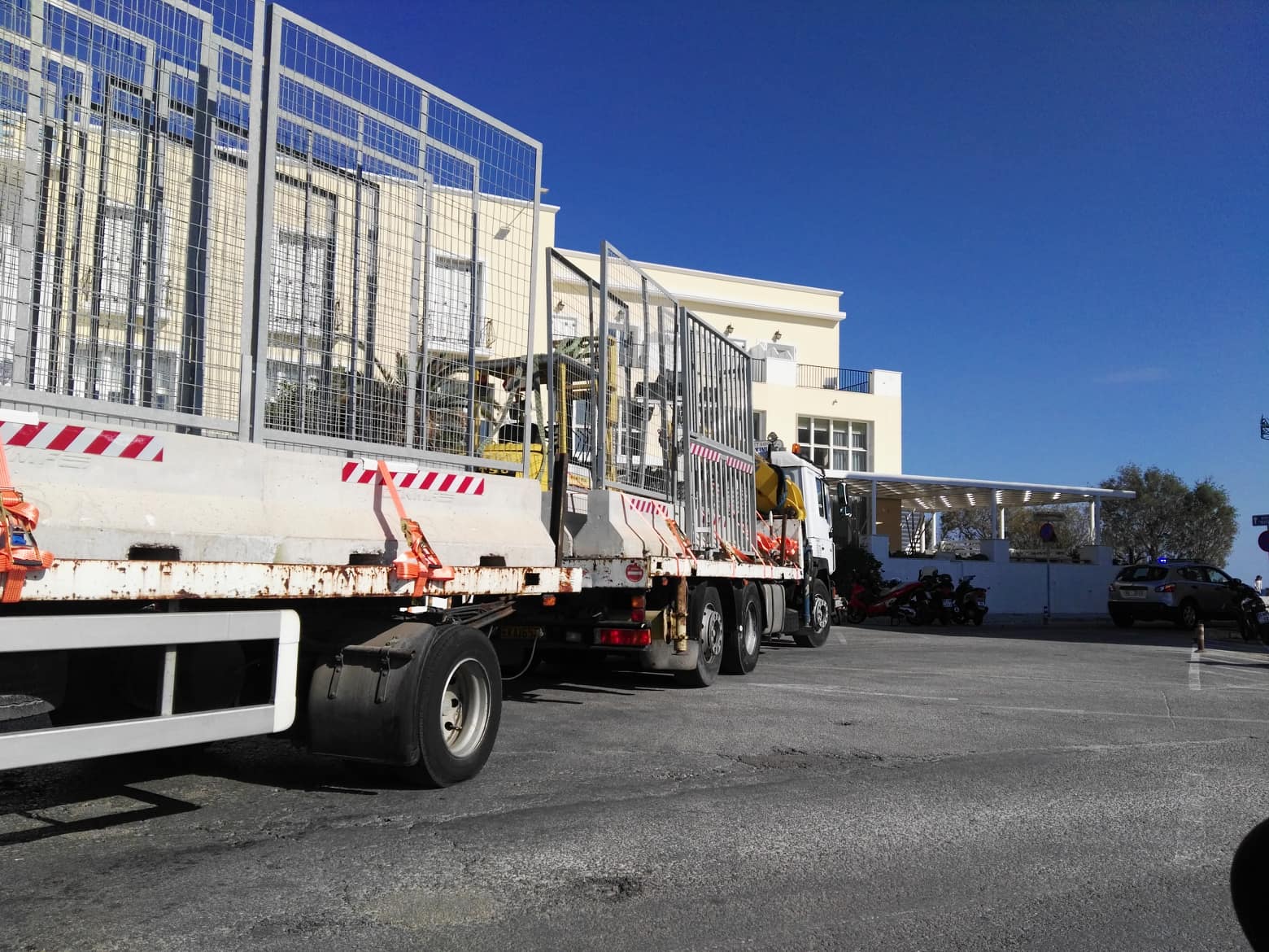 Περιμετρικά του χώρου που έχει δέσει το καταμαράν έχουν τοποθετηθεί από χθες ειδικά κιγκλιδώματα που μεταφέρθηκαν από την Αθήνα, στο πλαίσιο λήψης υψηλών μέτρων ασφαλείας.