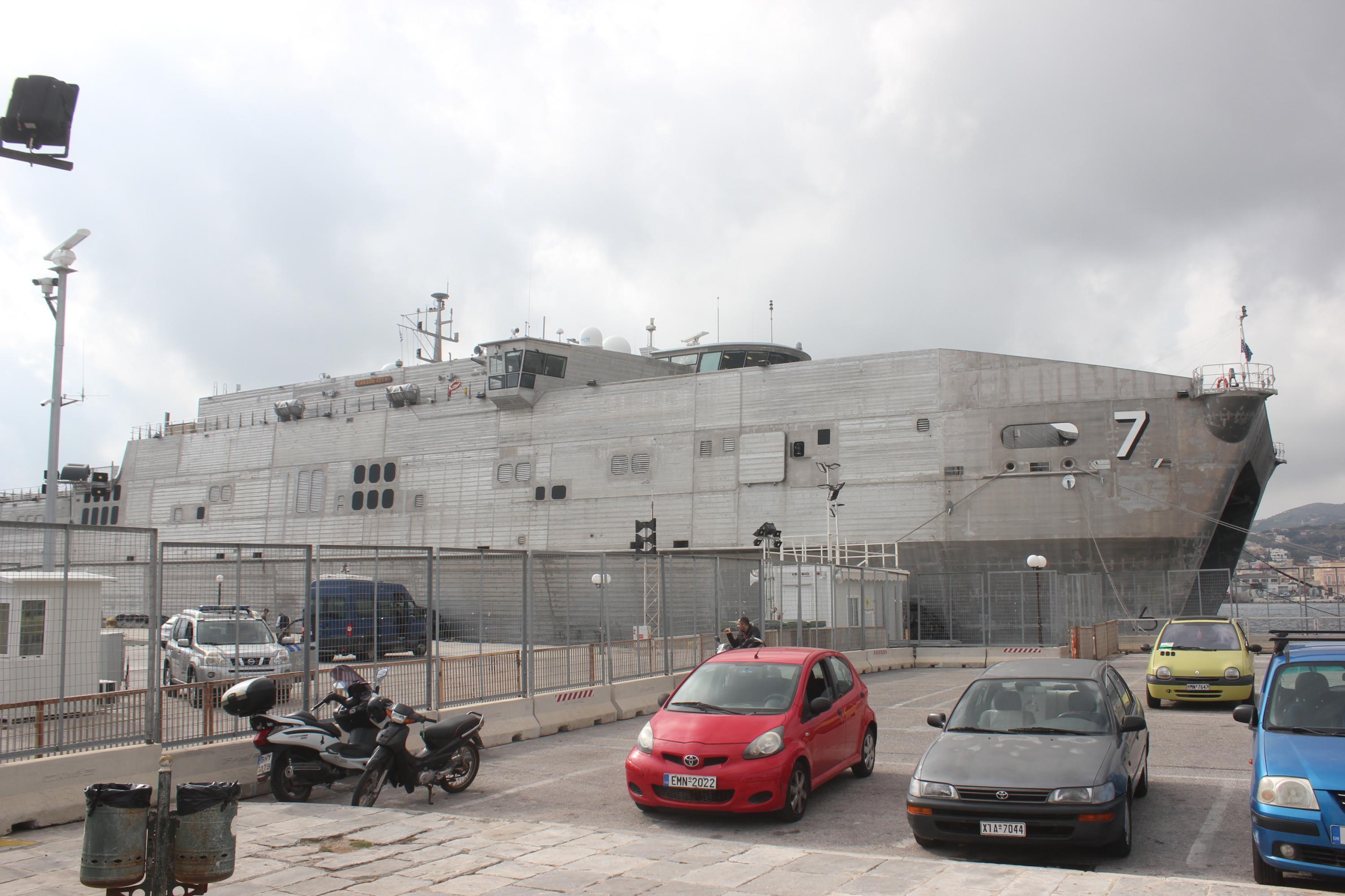 Στο λιμάνι της Ερμούπολης βρίσκεται από το πρωί (08.00) της Κυριακής το πλοίο του Πολεμικού Ναυτικού των ΗΠΑ, Carson City, το οποίο και θα παραμείνει στη Σύρο για αρκετές ημέρες.