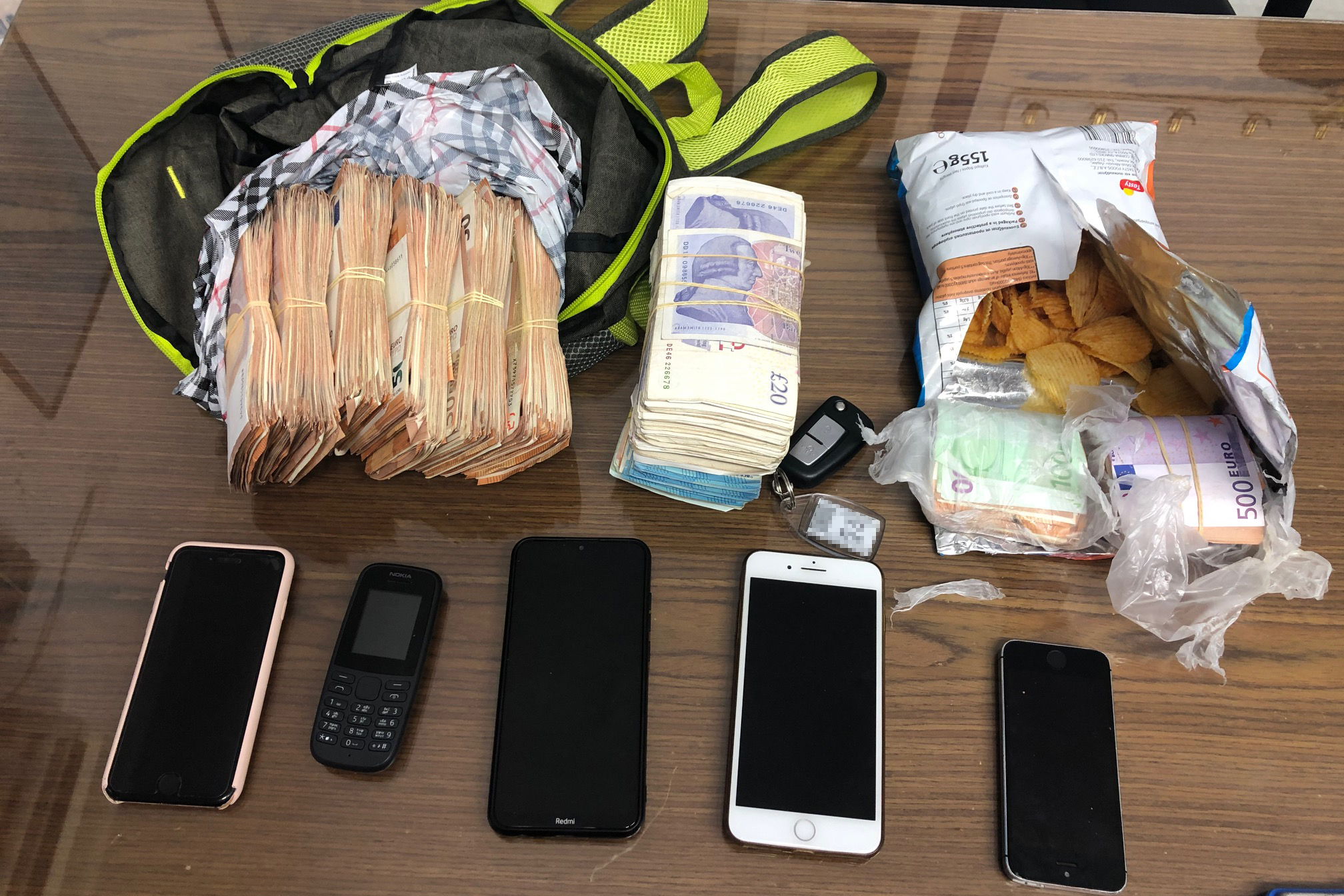 Σε Ι.Χ.Ε. αυτοκίνητο που χρησιμοποιούσαν οι δράστες βρέθηκε και κατασχέθηκε το χρηματικό ποσό των 72.390 ευρώ και 10.000 λιρών Αγγλίας.