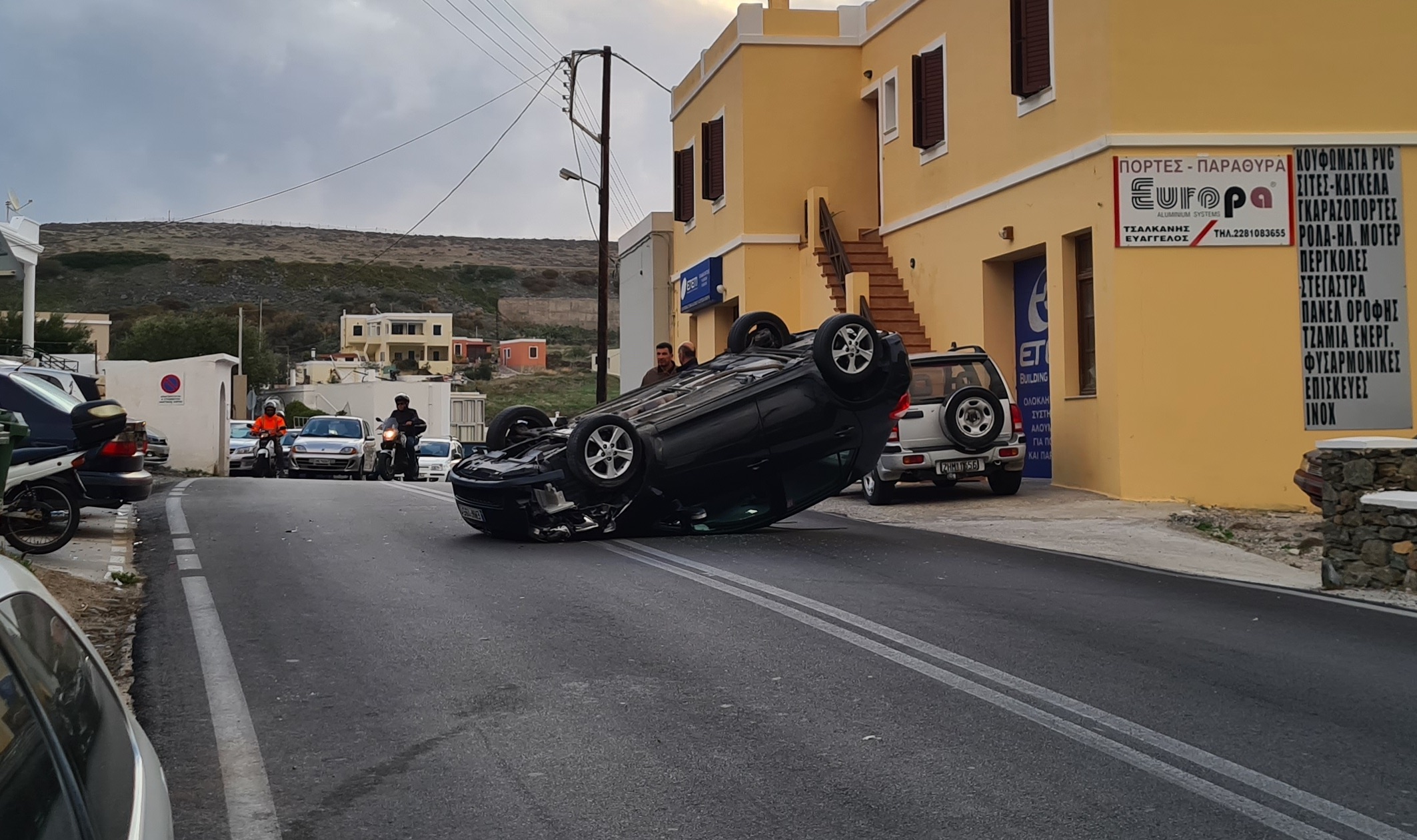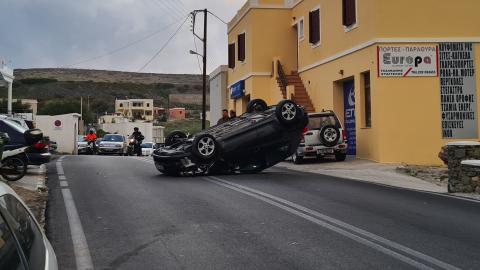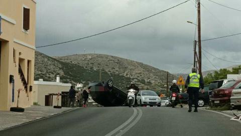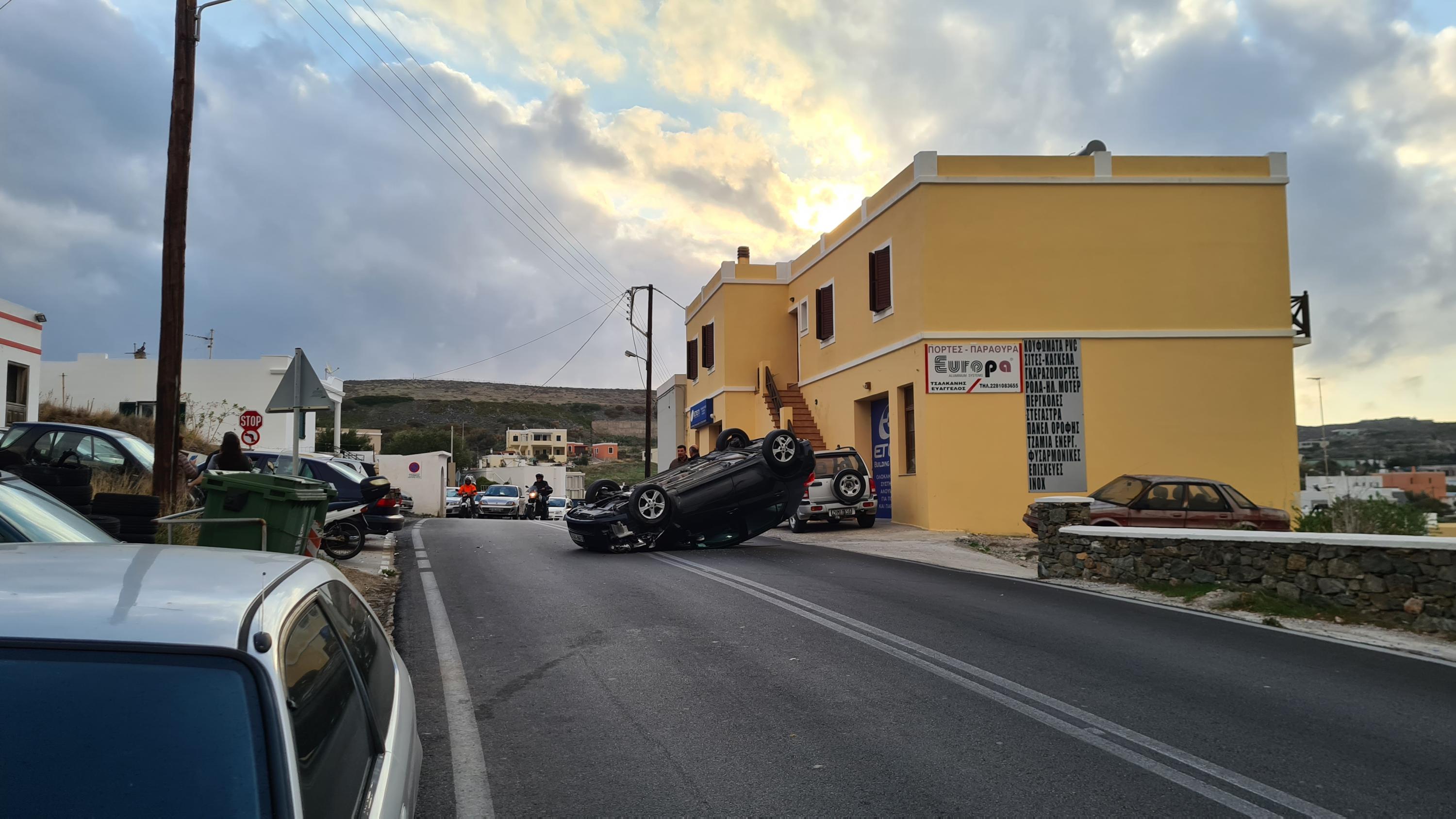 Σήμερα το πρωί, λίγο πριν τις 8 πμ στο Μάννα, κοντα το σχολείο, στο ρεύμα καθόδου με κατεύθυνση προς Ερμούπολη, αυτοκίνητο του οποίου ο οδηγός προσπάθησε να αποφύγει σταθμευμένο όχημα, προσέκρουσε ελαφρά πάνω του και μετα απο ανεξέλεγκτο ελιγμό, ανετράπη.