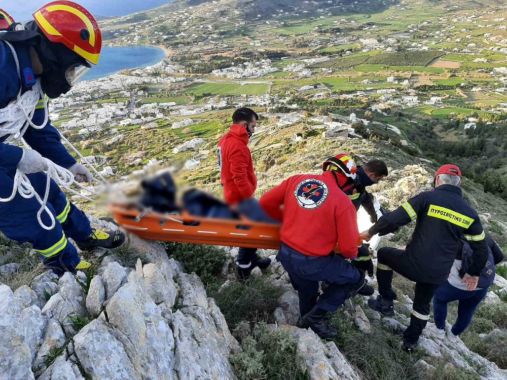 Σε συνεργασία με άνδρες του Α.Τ.  Πάρου, του Πυροσβεστικού Κλιμακίου Πάρου και διασώστες του ΕΚΑΒ, η σωρός μεταφέρθηκε σε σημείο όπου υπήρχε πρόσβαση για τα οχήματα και με το ασθενοφόρο της ΕΟΔ μεταφέρθηκε και παραδόθηκε για τις περαιτέρω διαδικασίες.
