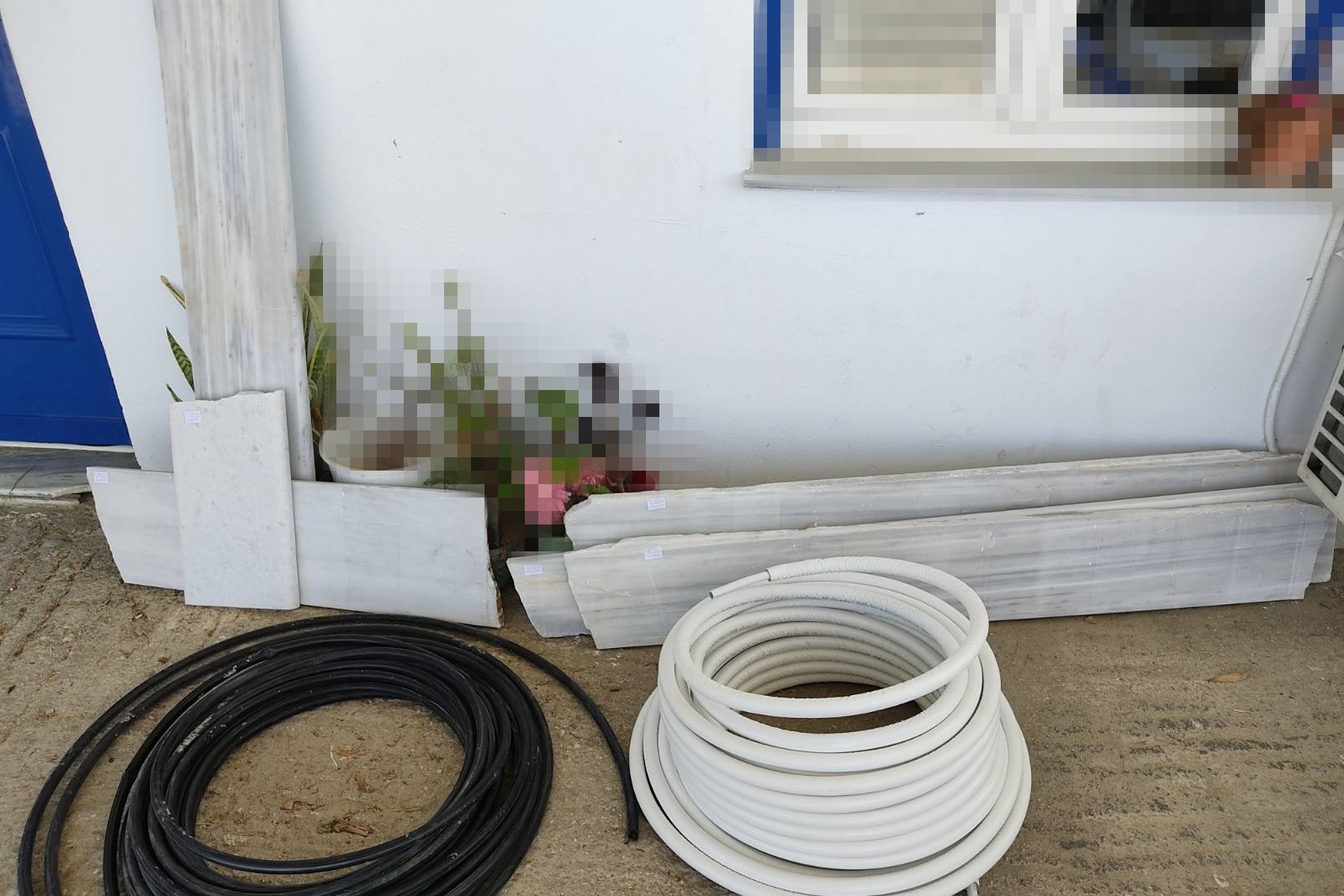 Σε έρευνα που έγινε στο σπίτι του, παρουσία δικαστικού λειτουργού, βρέθηκαν και κατασχέθηκαν διάφορα οικοδομικά υλικά και εργαλεία προερχόμενα από τις κλοπές.