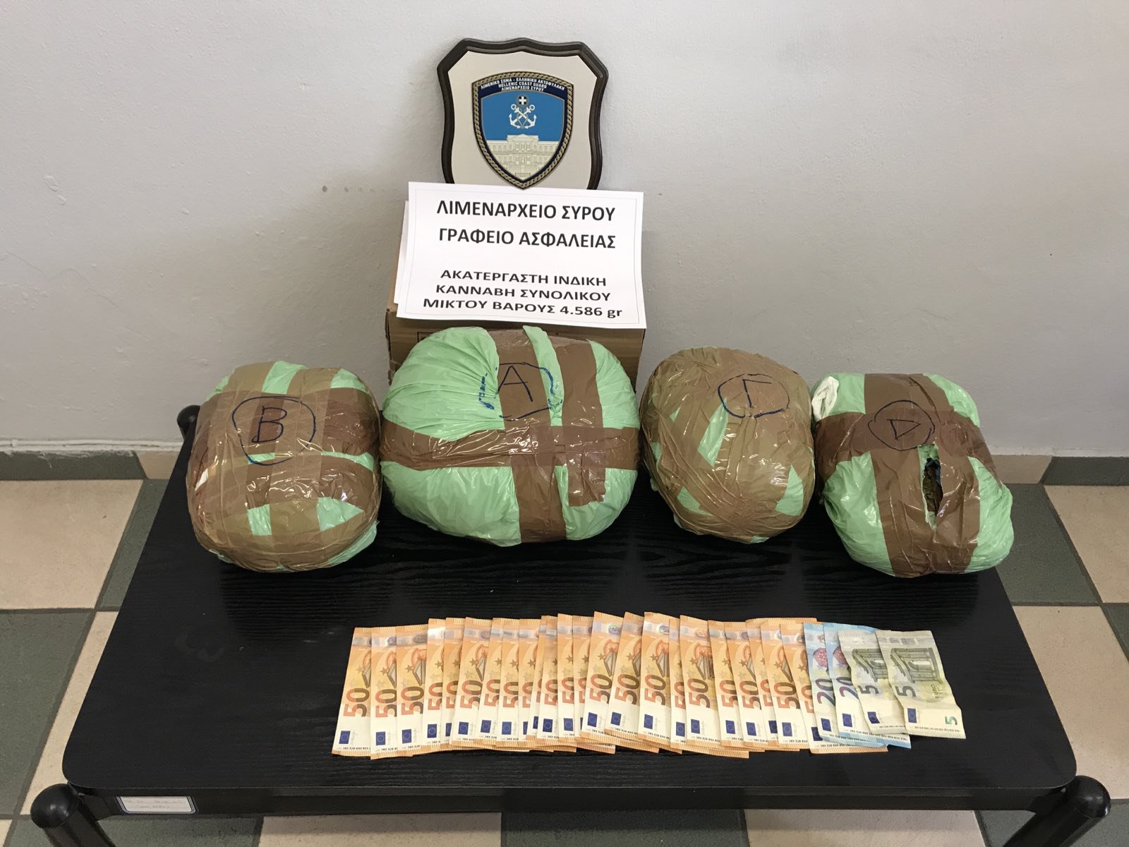 Ειδικότερα, κατόπιν αξιοποίησης πληροφοριών και διακριτικής επιτήρησης, εντοπίστηκε ο 45χρονος κατά την έξοδο του από εγκαταστάσεις μεταφορικής εταιρείας, να έχει στην κατοχή του δέμα – χαρτοκιβώτιο, στο οποίο μετά από έλεγχο ανευρέθηκαν και κατασχέθηκαν τέσσερις (04) πλαστικές αυτοσχέδιες συσκευασίες, περιέχουσες ακατέργαστη ινδική κάνναβη, συνολικού μικτού βάρους τεσσάρων κιλών και πεντακοσίων ογδόντα έξι γραμμαρίων (4,586 kg).