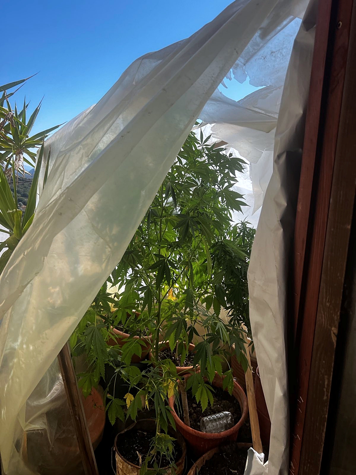 Τέσσερα δενδρύλλια κάνναβης, ύψους έως 2 μέτρα, τα οποία καλλιεργούσε μέσα σε γλάστρες