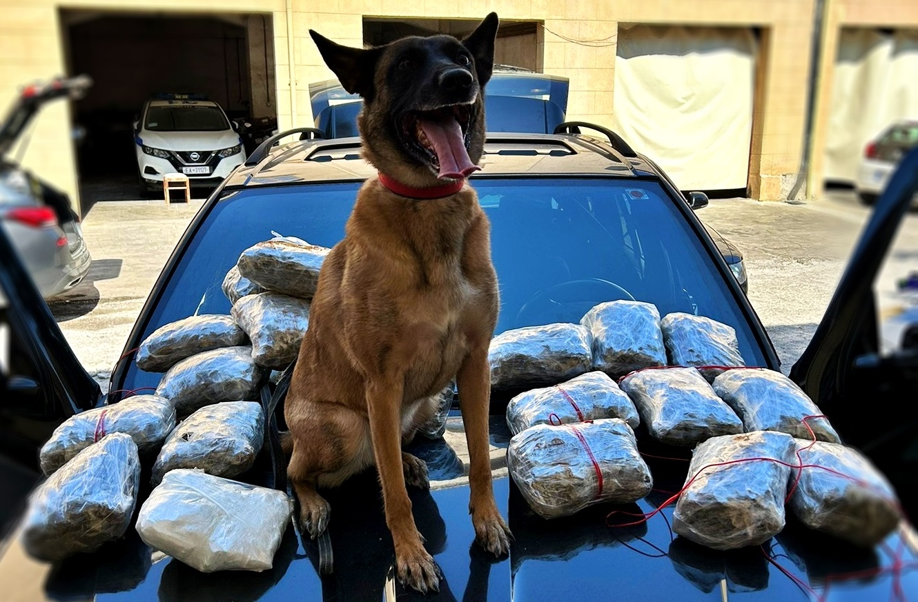 • 10 κιλά και 561 γραμμάρια κάνναβης, διαμοιρασμένα σε είκοσι συσκευασίες, επιμελώς κρυμμένη σε ειδικά διαμορφωμένη κρύπτη στο σασί του οχήματος