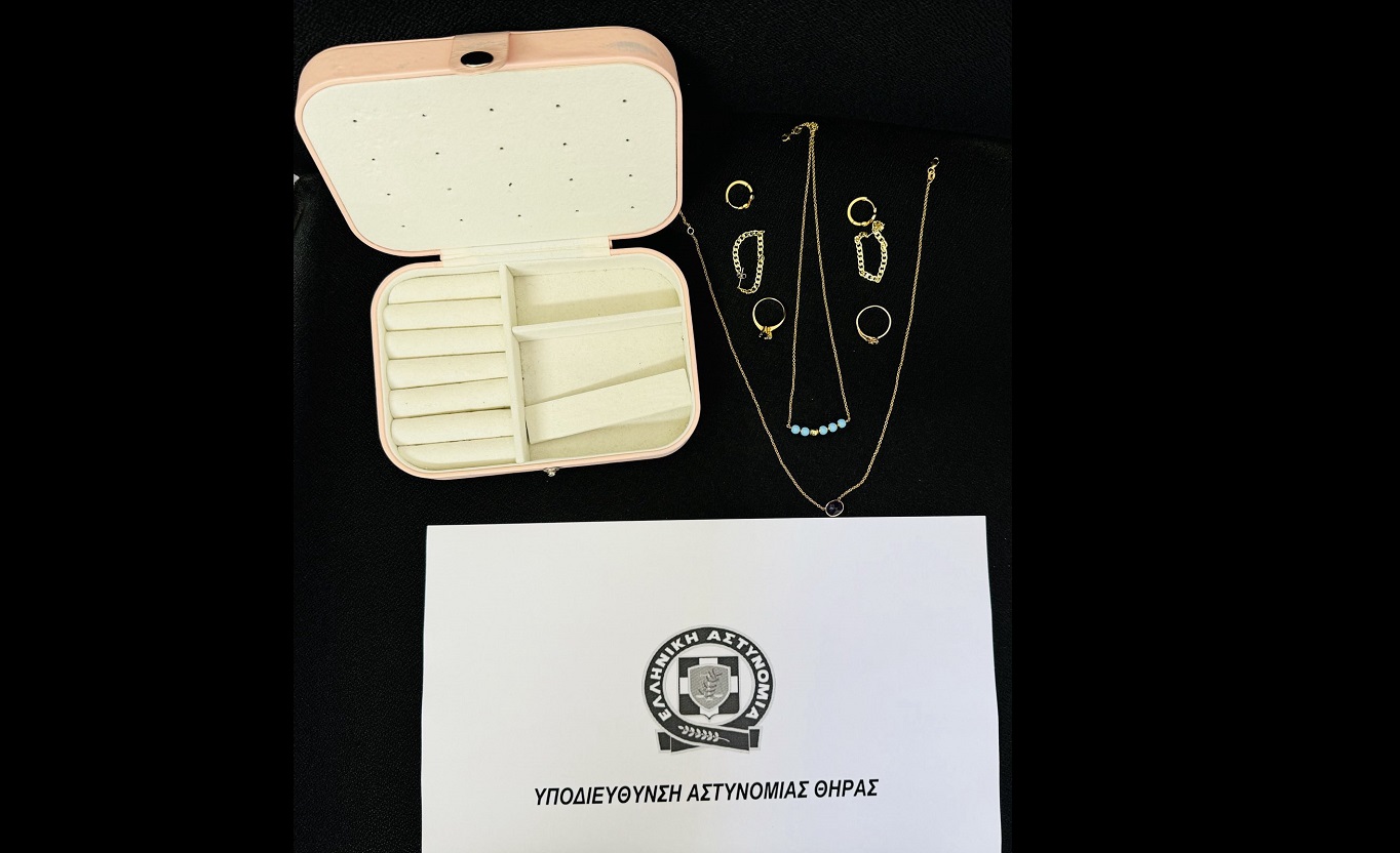 Συγκεκριμένα, την Κυριακή 6 Οκτωβρίου το μεσημέρι συνελήφθη στη Σαντορίνη, από αστυνομικούς της Υποδιεύθυνσης Αστυνομίας Θήρας, 30χρονη αλλοδαπή η οποία αφαίρεσε τιμαλφή, αξίας 6.000 ευρώ, από ξενοδοχειακό κατάλυμα στο οποίο εργαζόταν. Τα τιμαλφή βρέθηκαν, κατασχέθηκαν και αποδόθηκαν στην δικαιούχο.