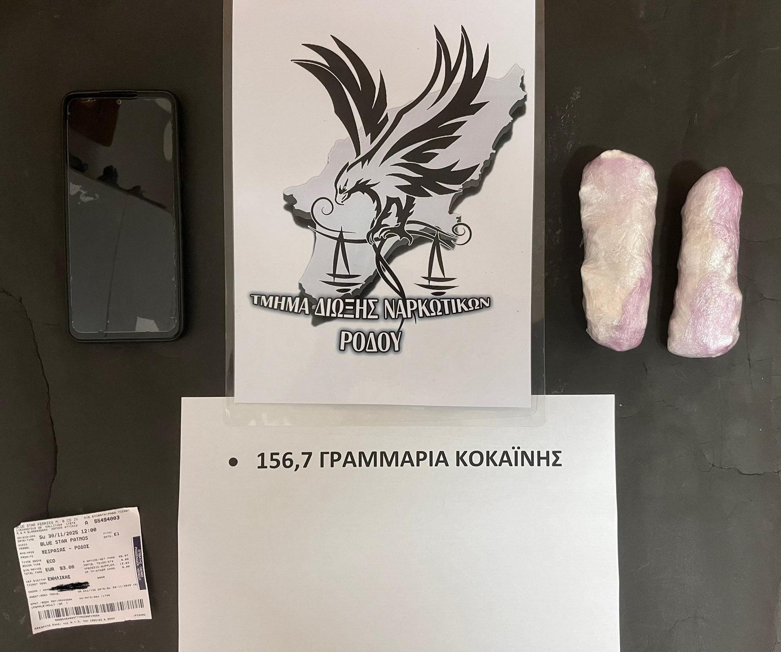 · Κοκαΐνη βάρους -156,7- γραμμαρίων