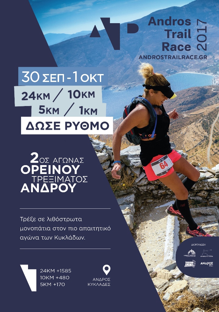 Μετά την επιτυχημένη διοργάνωση του Andros Trail Race , του πρώτου αγώνα ορεινού τρεξίματος που έγινε στο νησί της Άνδρου το 2016, η διοργάνωση επιστρέφει με το 2o Andros Trail Race 2017. Αυτή τη φορά το διήμερο θα πλαισιωθεί και από άλλες παράλληλες αγωνιστικές διαδρομές 5χλμ City Trail – Run & Hike και 1.000μ για παιδιά, που θα πραγματοποιηθούν γύρω από την περιοχή Κορθίου .