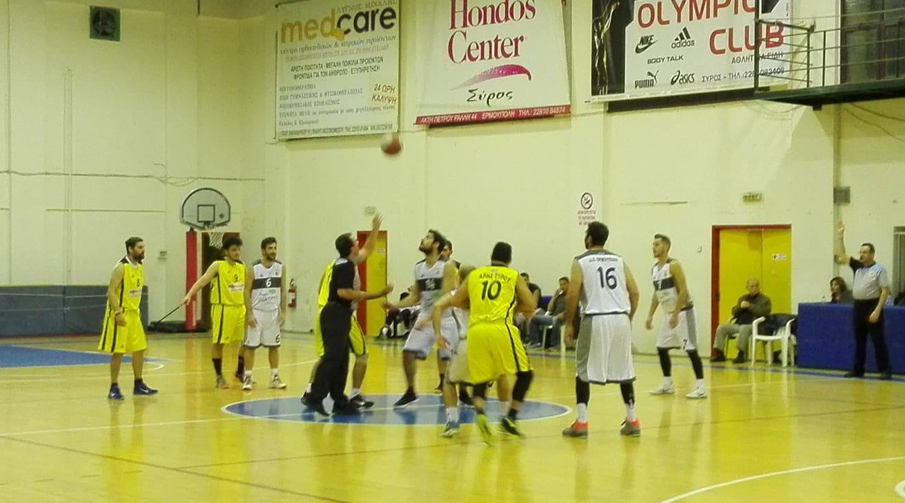 Ο ΑΟ Ερμούπολης ήταν ο νικητής του τοπικού ντέρμπι της Σύρου απέναντι στον Άρη Σύρου για το πρωτάθλημα ανδρών της ΕΣΚ Κυκλάδων με σκορ 77-50.