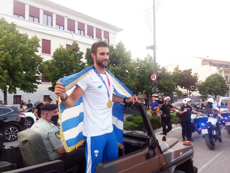 Ουσιαστικά η υποδοχή ξεκίνησε από το Πανηπειρωτικό Στάδιο, όπου ο 24χρονος Ολυμπιονίκης επιβιβάστηκε σε ένα τζιπ του Στρατού και ακολούθησε αυτοκινητοπομπή έως την κεντρική πλατεία.
