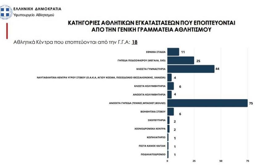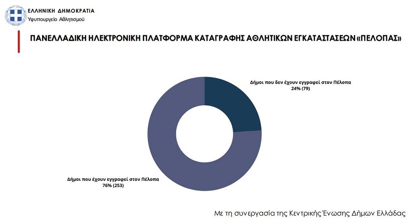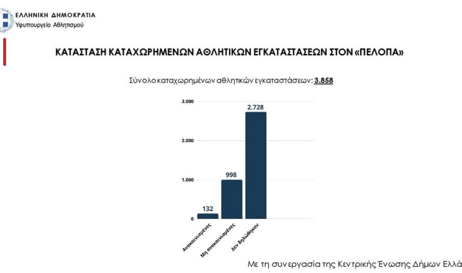 «Μέχρι στιγμής έχουν καταγραφεί στον ΠΕΛΟΠΑ 3.858 αθλητικές εγκαταστάσεις. Σύμφωνα με δηλώσεις των 253 Δήμων και των Οργανισμών τους, είναι καταγεγραμμένα: