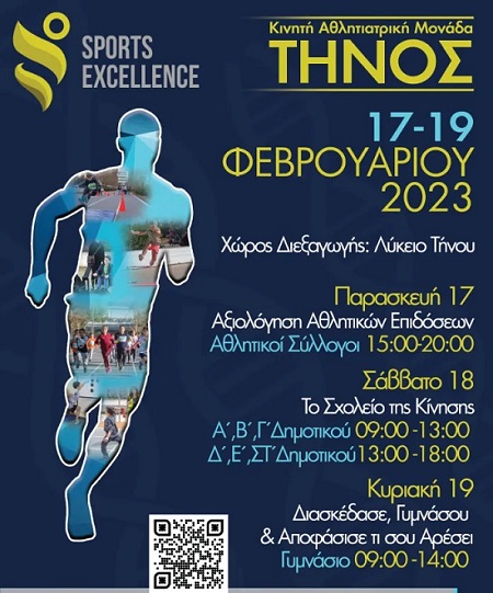 Το καινοτόμο πρόγραμμα, θα πραγματοποιηθεί το διήμερο 17- 19 Φεβρουαρίου 2023, στο σχολικό συγκρότημα των Λυκείων Τήνου και θα περιλαμβάνει την διεξαγωγή εργομετρικού ελέγχου σε αθλητές αθλητικών ακαδημιών της Τήνου, καθώς και σε μαθητές Πρωτοβάθμιας και Δευτεροβάθμιας Εκπαίδευσης με σκοπό την αξιολόγηση των αθλητικών ικανοτήτων τους μέσω δοκιμασιών, την αξιολόγηση δεικτών υγείας για την ανίχνευση παιδικής παχυσαρκίας, την εκτίμηση του επιπέδου της φυσικής κατάστασης των μαθητών μέσω παιχνιδιού.