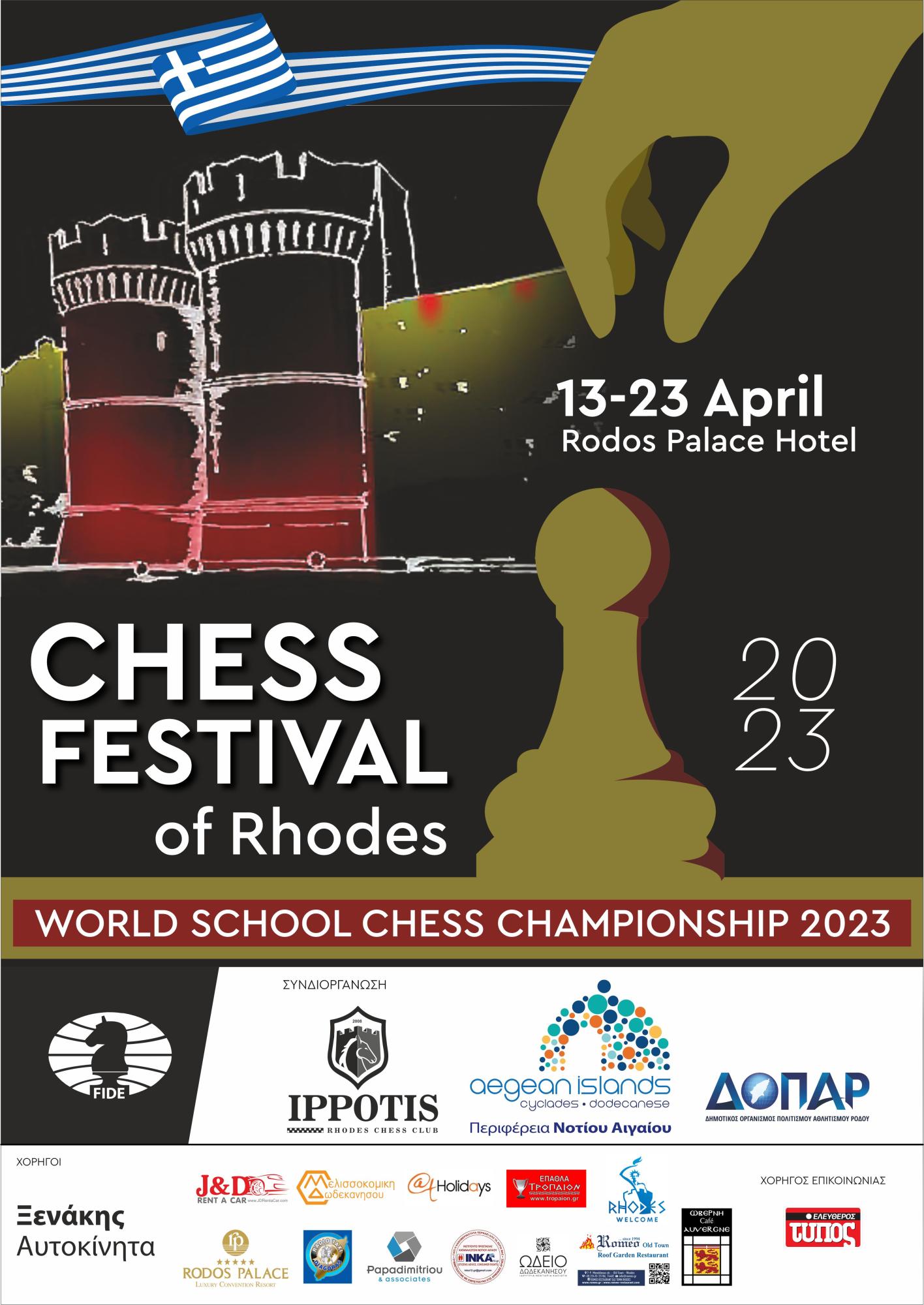 Το Παγκόσμιο Σχολικό Πρωτάθλημα Σκάκι ξεκινάει την Παρασκευή 14 Απριλίου και η Ρόδος ετοιμάζεται να υποδεχθεί για 10 μέρες τους καλύτερους νέους σκακιστές από όλο τον κόσμο.