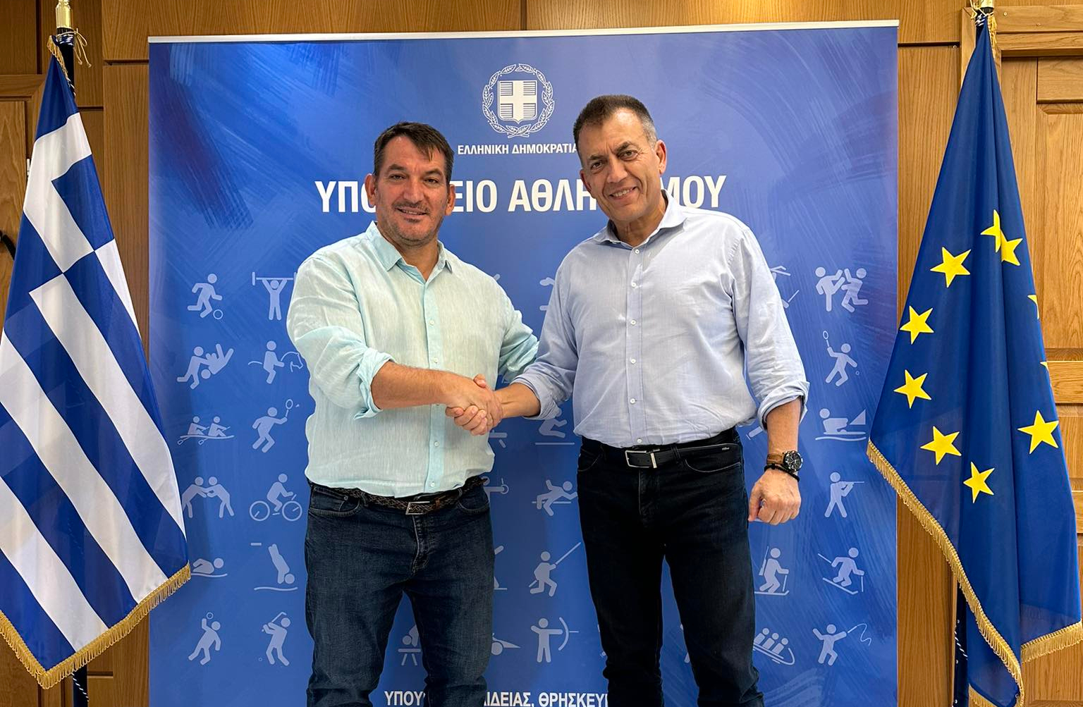 Συνάντηση συνεργασίας είχε ο αναπληρωτής Υπουργός Αθλητισμού, Γιάννης Βρούτσης, με τον Γενικό Γραμματέα της Ομοσπονδίας Άρσης Βαρών, Πύρρο Δήμα.