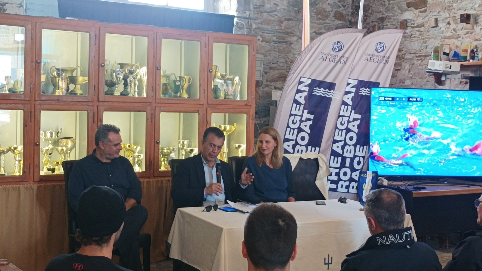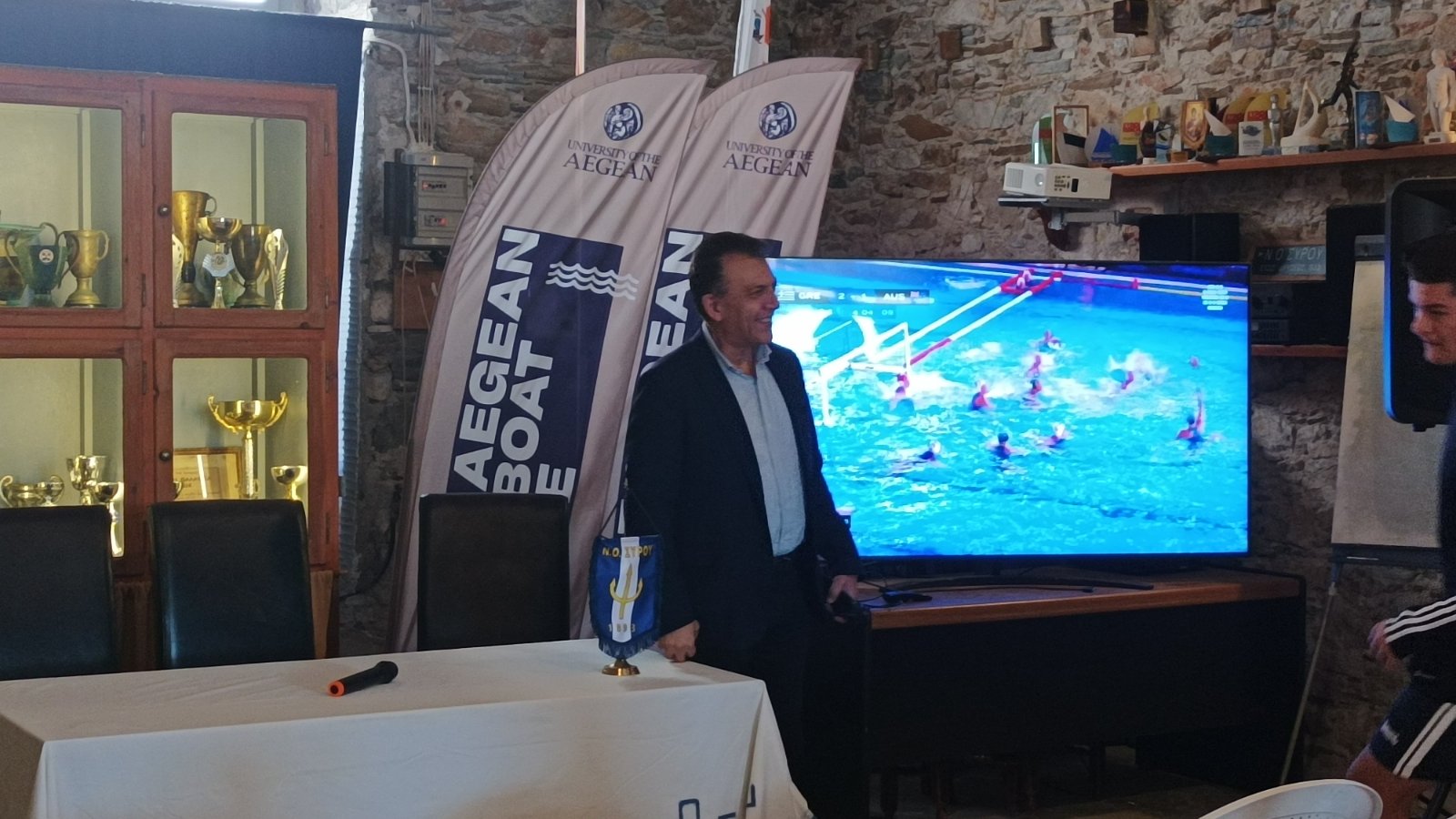 Ο κ. Βρούτσης και τα μέλη των διοικήσεων βρέθηκαν στο Νεώσικο του Ναυτικού Ομίλου. Το παρών στη συνάντησε έδωσε και η Ολυμπιονίκης της Υδατοσφαίρισης, Εύη Μωραΐτίδου.