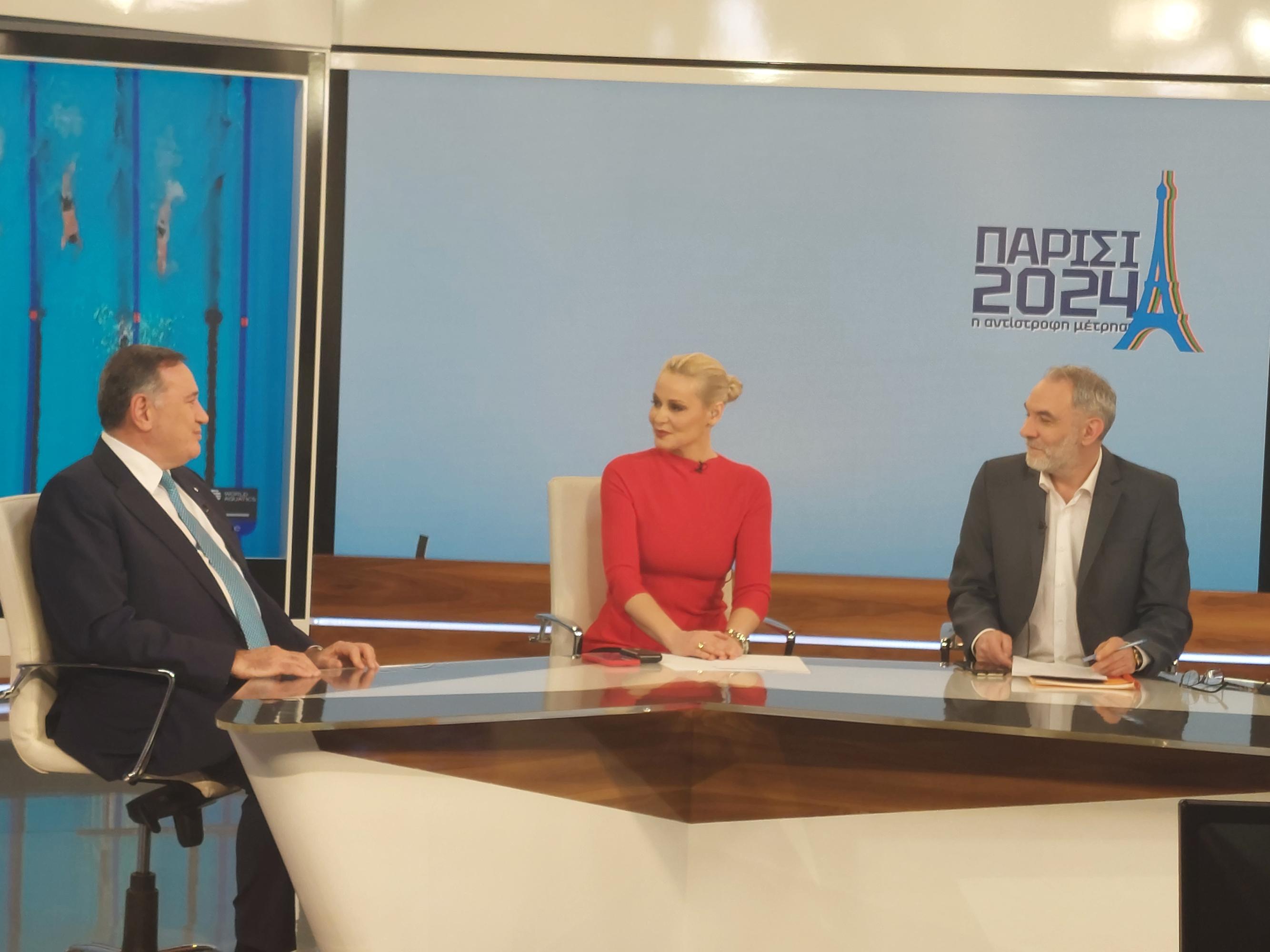 Ο Πρόεδρος της ΕΟΕ Σπύρος Καπράλος συμμετείχε στην πρεμιέρα της νέας σειράς εκπομπών της ΕΡΤ «Παρίσι 2024: Η αντίστροφη μέτρηση» στο EΡΤΝews και στους δημοσιογράφους Τάσο Κολλίντζα και Κατερίνα Αναστασοπούλου.