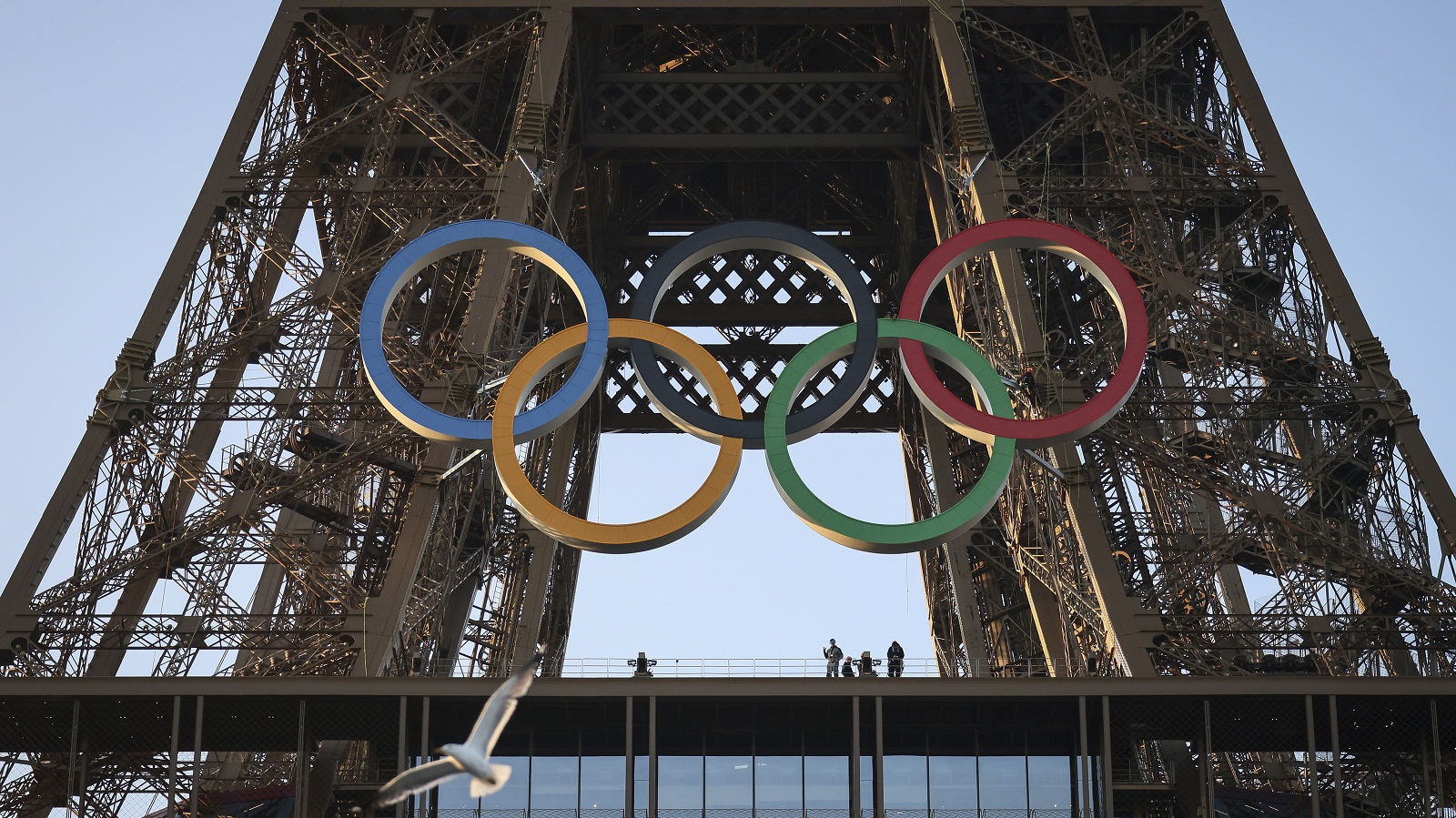 Οι διοργανωτές των Ολυμπιακών Αγώνων του Παρισιού παρουσίασαν σήμερα Παρασκευή μια κατασκευή με τους πέντε ολυμπιακούς κύκλους που τοποθετήθηκαν στον Πύργο του Αϊφελ, καθώς η γαλλική πρωτεύουσα μετρά πλέον 50 ημέρες μέχρι την έναρξη των Θερινών Αγώνων.
