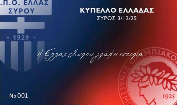 Η Ελλάς Σύρου η οποία έχει μια άκρως επιτυχημένη πορεία στο Πρωτάθλημα ζει ακόμη ένα «τρελό ποδοσφαιρικό όνειρο»: Να πετύχει ένα θετικό αποτέλεσμα απέναντι στον πανίσχυρο Ολυμπιακό, κάτι που θα της επιτρέψει να προκριθεί στις 12 καλύτερες ομάδες της League Phase του Κυπέλλου Ελλάδος.