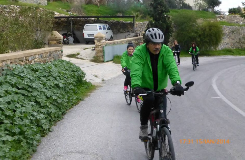“Ως ποδηλάτες, ως ομάδα συμμετέχουμε σε εκδηλώσεις που γίνονται στον τόπο μας, όπως στον ημιμαραθώνιο που διοργανώθηκε σε δρόμους, 3χλ., 5χλ. και 21,5 χιλιομέτρων, οι ποδηλάτες συμμετείχαν διανύοντας αυτή την απόσταση με τα ποδήλατα, μεταφέροντας νερά στους δρομείς που έτρεχαν. Ήταν μία πάρα πολύ καλή εμπειρία. Είμαστε σ' αυτή τη διαδρομή 15 ποδήλατα και βοηθούσαμε. Ακόμη είχαμε πάρει μέρος σαν ποδηλάτες στο καρναβάλι της Σύρου. Επίσης, συμμετείχαμε στην “Ποδηλασία Αγάπη” με τους τρεις Κύπριους ποδηλάτες, που μάζεψαν τόνοι τρόφιμα. Θέλω να πω ότι εκτός ότι ασχολούμαστε με το ποδήλατο για τους εαυτούς μας, προσπαθούμε να συμμετάσχουμε και σε κοινωνικές δράσεις, σαν ομάδα ποια. Αυτό μας δένει πολύ περισσότερο και μας κάνει ανοικτούς για όλους. Στην ομάδα μας χωρούν και οι δυνατοί και οι αδύναμοι, πάμε βόλτα κι αν κάποιος δεν έχει τα κουράγια, τότε περιμένουμε να ξεκουραστεί για να συνεχίσουμε, όλα ρυθμίζουμε ανάλογα με το ποιοι είμαστε και που συμμετέχουμε. Έτσι, δεν υπάρχουν παρεξηγήσεις και κανένας δεν κοιτά το ατομικό του στοιχείο, αλλά το καλό της ομάδας. Αυτά τα 2-3 χρόνια έχουμε συνυπάρξει πάρα πολύ καλά. Θέλουμε να καλέσουμε τον κόσμο να έρθουν κοντά μας, να μας γνωρίσουν και να ζήσουν όλα αυτά που εμείς ζούμε σε καθημερινή βάση. Πιστεύω ότι δεν θα βγουν χαμένοι, θα είναι κάτι που θα τους αρέσει πάρα πολύ”.