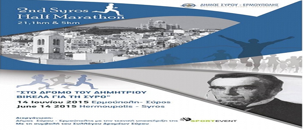 Ο Δήμος Ερμούπολης Σύρου με την τεχνική υποστήριξη της Sportevent προκηρύσσουν αγώνα δρόμου την Κυριακή 14 Ιουνίου 2015 με την επωνυμία "Στο δρόμο του Δημήτριου Βικέλα για τη Σύρο".