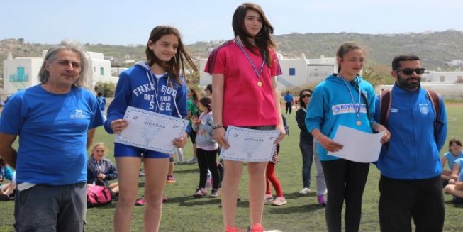 Νικήτρια αναδείχτηκε η Μαρία Καβαλιέρου του Πανναξιακού με 1.429 βαθμούς με εξαιρετικές επιδόσεις στο μήκος (4.85) και στα 60 μέτρα (8.58). Στη δεύτερη θέση η Πάολα Δέλπρα του Ναξιακού και στην τρίτη η Σιμόνα Γκορνάτι του Πανναξιακού με θαυμάσια επίδοση στα 60 μέτρα (8.68). Καλές επιδόσεις σημείωσαν στα 1.000 μέτρα η Λιβανίου του Πανναξιακού (3.49) και η Κατερίνα Χανιώτη (3.50) του ΑΟ Μυκόνου, ενώ στη σφαιροβολία πρώτευσε η Μαρίνα Ζουγανέλη του ΑΟΜυκόνου (7.98)