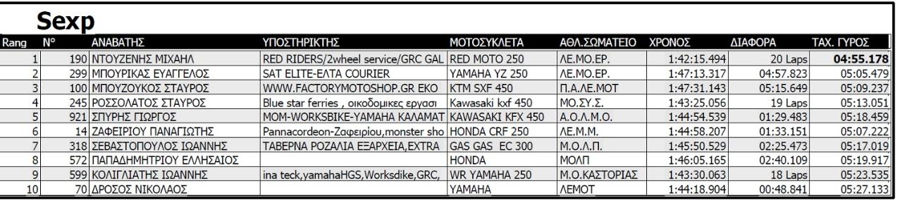SE Expert μοτοσυκλέτες από 110 έως 650 κ. εκ. Συμμετείχαν αθλητές από 15 ετών και άνω, οι οποίοι δεν είχαν δικαίωμα συμμετοχής στις κατηγορίες, S1, S2, S Senior, όπως και από άλλη περιφέρεια και δεν βαθμολογήθηκαν.