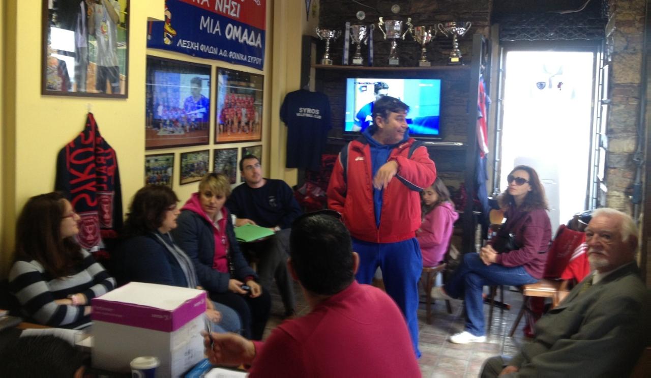 Φυσικά από τα γραφεία της Λέσχης δεν μπορούσαν να λείψουν και τα μέλη της διοίκησης του συλλόγου, που είναι όλοι και μέλη της Λέσχης, ενώ το παρών έδωσε και ο δημοσιογράφος της Nova Παντελής Λώλης που βρέθηκε στη Σύρο για την τηλεοπτική μετάδοση του αγώνα με την ΑΕΚ.