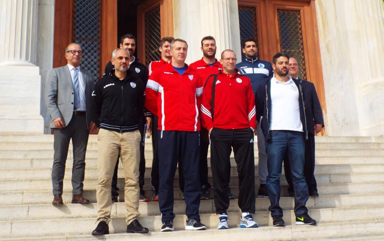 O προπονητής του Γιάννης Ορφανός και ο κεντρικός του Τάσος Γάτσης έδωσαν το παρών στην αίθουσα του δημαρχιακού μεγάρου.