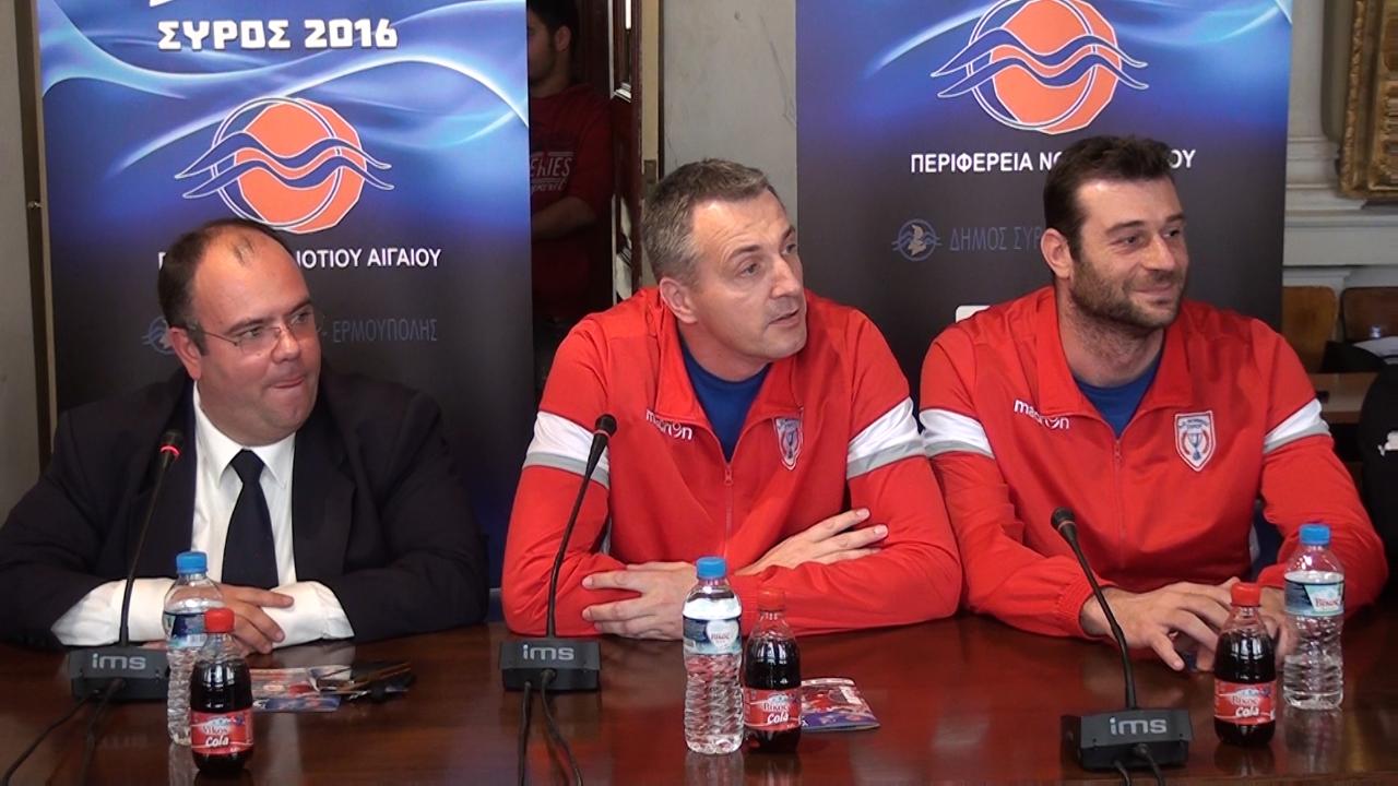 Χθες το μεσημέρι πραγματοποιήθηκε στην αίθουσα συνεδριάσεων του Δημοτικού Συμβουλίου του Δήμου Σύρου - Ερμούπολης συνέντευξη τύπου στο πλαίσιο της διοργάνωσης του final four του league cup.