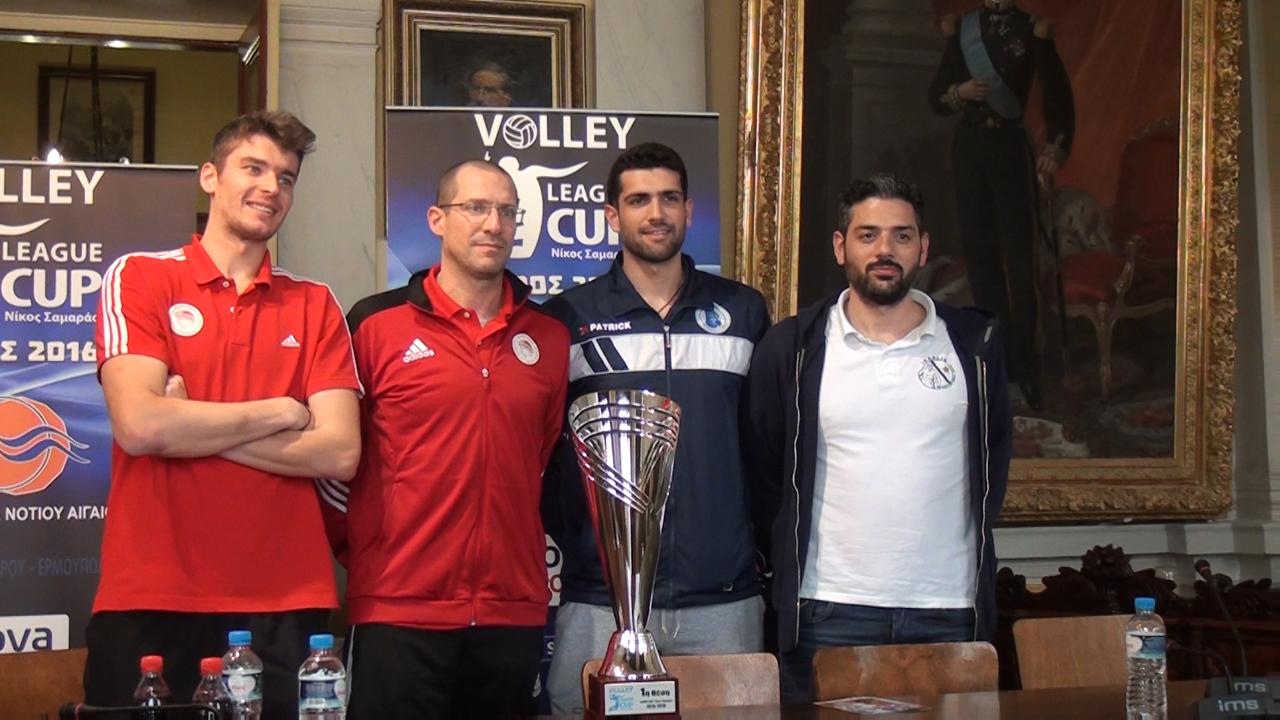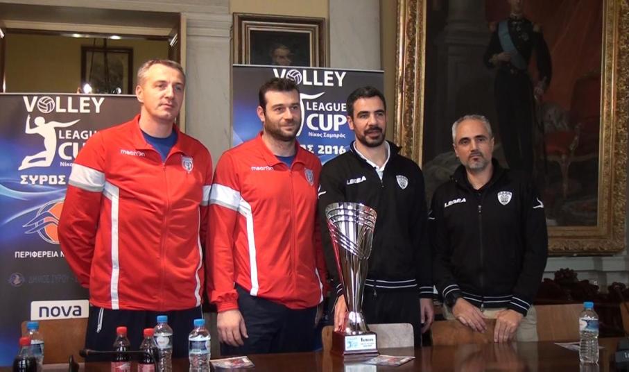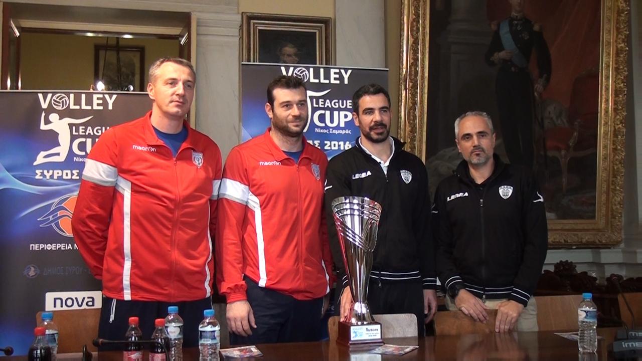 Ο πασαδόρος του Ολυμπιακού Ντίμα Φιλίποφ είπε: «Πρώτα απ' όλα να ευχαριστήσω τους ανθρώπους του νησιού για την άψογη φιλοξενία. Ξέρουμε ότι η Σύρος ζει για το βόλεϊ και είναι χαρά για εμάς τους αθλητές να παίζουμε εδώ. Το league cup είναι μία μεγάλη γιορτή του βόλεϊ και ελπίζω να γεμίσει το γήπεδο για να απολαύσει ο κόσμος υψηλού επιπέδου βόλεϊ».