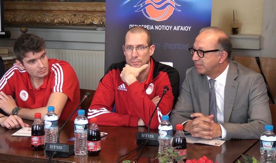 O Ολυμπιακός εκπροσωπήθηκε από τον πασαδόρο του Ντίμα Φιλίποφ και τον Ρομπέρτο Πιάτσα. O Ιταλός προπονητής του Ολυμπιακού εξέφρασε τη συμπάθεια του προς τον αντιπεριφερειάρχη Νοτίου Αιγαίου Γιώργο Λεονταρίτη ο οποίος ως γνωρίζει άριστα την ιταλική γλώσσα και έκανε και τη μετάφραση των δηλώσεων του.