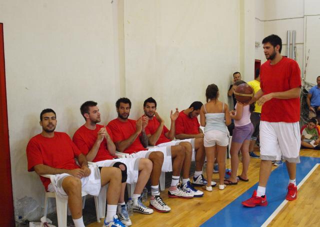 Οι δις πρωταθλητές Ευρώπης ήρθαν στη Σύρο και από την πλευρά του όλο το νησί τους τίμησε με την αγάπη του και την φιλοξενία του. Την Τετάρτη το βράδυ, στην Α' κλειστή αίθουσα του Αθλητικού Κέντρου του Δήμου Σύρου πραγματοποιήθηκε φιλικό παιχνίδι φιλανθρωπικού χαρακτήρα, έπειτα την πρωτοβουλία που πήρε ο παίκτης του Ολυμπιακού και Συριανός Γιώργος Πρίντεζης. Ο “ερυθρόλευκος” παίκτης πήρε την πρωτοβουλία να διοργανώσει ένα φιλικό παιχνίδι του οποίου τα έσοδα θα διατεθούν στους Νεφροπαθείς Σύρου και στο Γεροκομείο Αγίου Παντελεήμονα. Τη σκέψη του αυτή την μοιράστηκε με συμπαίκτες του στον Ολυμπιακό και αμέσως οι, Κώστας Παπανικολάου, Δημήτρης Μαυροειδής, Δημήτρης Κατσίβελης, Βαγγέλης Μάντζαρης και ο Κώστας Σλούκας δέχθηκαν να συμμετάσχουν σ' αυτήν την προσπάθεια. Αυτές οι κινήσεις κάνουν τους μεγάλους παίκτες, και οι αθλητές του Ολυμπιακού έδειξαν με τον καλύτερο τρόπο, πόσο σπουδαίοι αθλητές είναι, καθώς διαθέτουν ήθος και τεράστια αγάπη για τον συνάνθρωπό τους. Όλο το νησί την Τετάρτη ήταν στο πόδι, καθώς είχε την τιμή να φιλοξενήσει έξι συνολικά πρωταθλητές Ευρώπης.