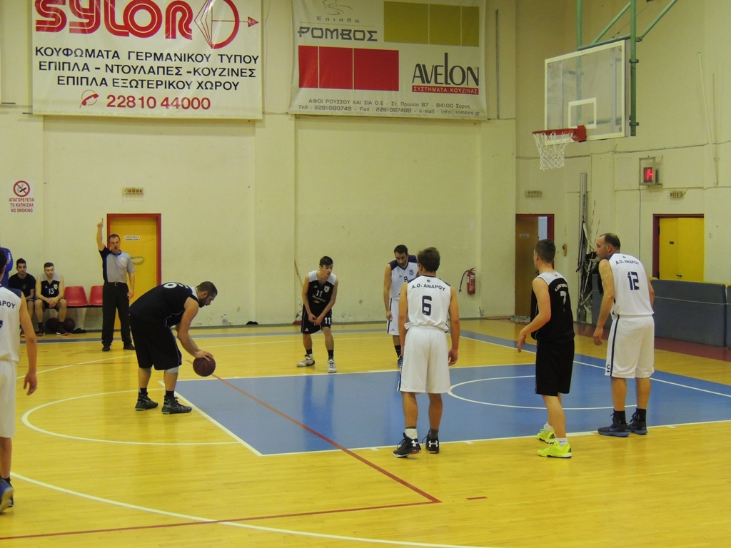 Οι άνδρες μπήκαν δυνατά στο παιχνίδι και με πίεση ψηλά οδήγησε τους φιλοξενούμενους σε αρκετά λάθη και έδωσε στους Συριανούς το δικαίωμα να πραγματοποιήσουν περισσότερες επιθέσεις. Η διαφορά στο τέλος του πρώτου δεκαλέπτου έφτασε τους 10 πόντους, με επιμέρους σκορ 26-16.Στο δεύτερο δεκάλεπτο οι Συριανοί συνέχισαν στον ίδιο ρυθμό κι αυτό είχε ως αποτέλεσμα η διαφορά να ανέβει στους 25 πόντους, αφού το σκορ στο τέλος του πρώτου ημιχρόνου ήταν 51-26. Στο τρίτο δεκάλεπτο οι φιλοξενούμενοι είχαν ισορροπήσει κάπως το ματς αφού το σκορ στο τέλος της περιόδου ήταν 17-12. Στο τέταρτο και τελευταίο δεκάλεπτο οι παίκτες του Ανδρέα Μαύρου πάτησαν... γκάζι και με επιμέρους σκορ 23-3 διαμορφώθηκε το τελικό 91-41.