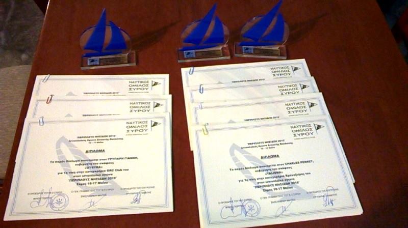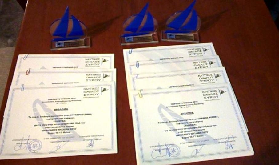 Στο Νεώσοικο, στα γραφεία του Ναυτικού Ομίλου Σύρου, έγινε η απονομή των επάθλων στους νικητές και τους συμμετέχοντες, στον αγώνα ιστιοπλοΐας Ανοιχτής Θαλάσσης με τη επωνυμία "Περίπλους Νησίδων", που ήταν υπό την αιγίδα της Ε.Ι.Ο.