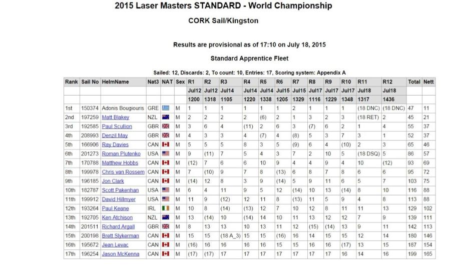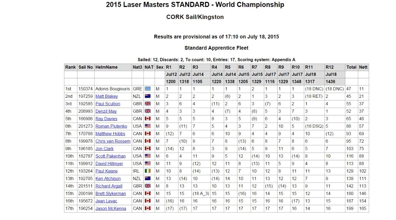 Από το ξεκίνημα των αγώνων λέιζερ ο παγκόσμιος πρωταθλητής Αντώνης Μπουγιούρης έδειξε πως βρισκόταν σε εξαιρετική κατάσταση και πως θα έκανε έναν πάρα πολύ μεγάλο αγώνα. Όσο ο αγώνας έφτανε προς το τέλος του, ο Συριανός ιστιοπλόος εδραίωνα την πρώτη θέση και με την ολοκλήρωση των αγώνων ανέβηκε στο πιο ψηλό σκαλί του βάθρου.